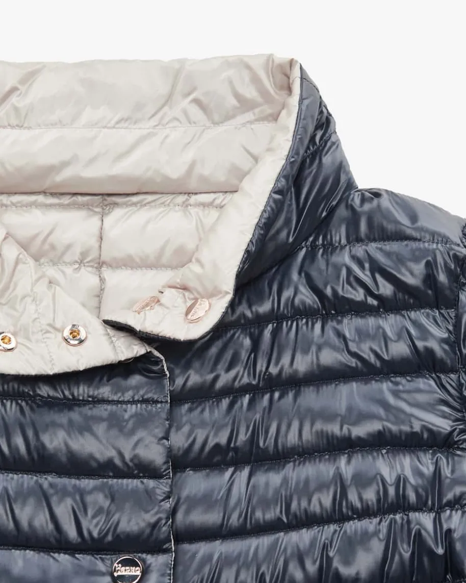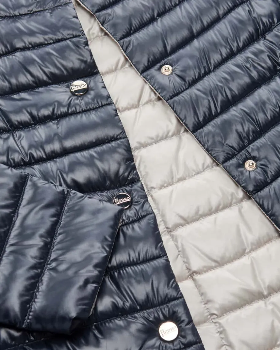 Wende-Daunenjacke für Damen von Herno in Navy und Taupe. HöchsteQualitätsstandart, zeitlose Schnitte und eine stilvolle Farben-Auswahl zeichnendie Entwürfe des italienischen Traditionsunternehmen aus. Die leichte, aberdennoch wärmende Jacke überzeugt nicht nur durch die hochwertige Daunen-Füllung,sondern auch durch ihre praktische Wende-Funktion.