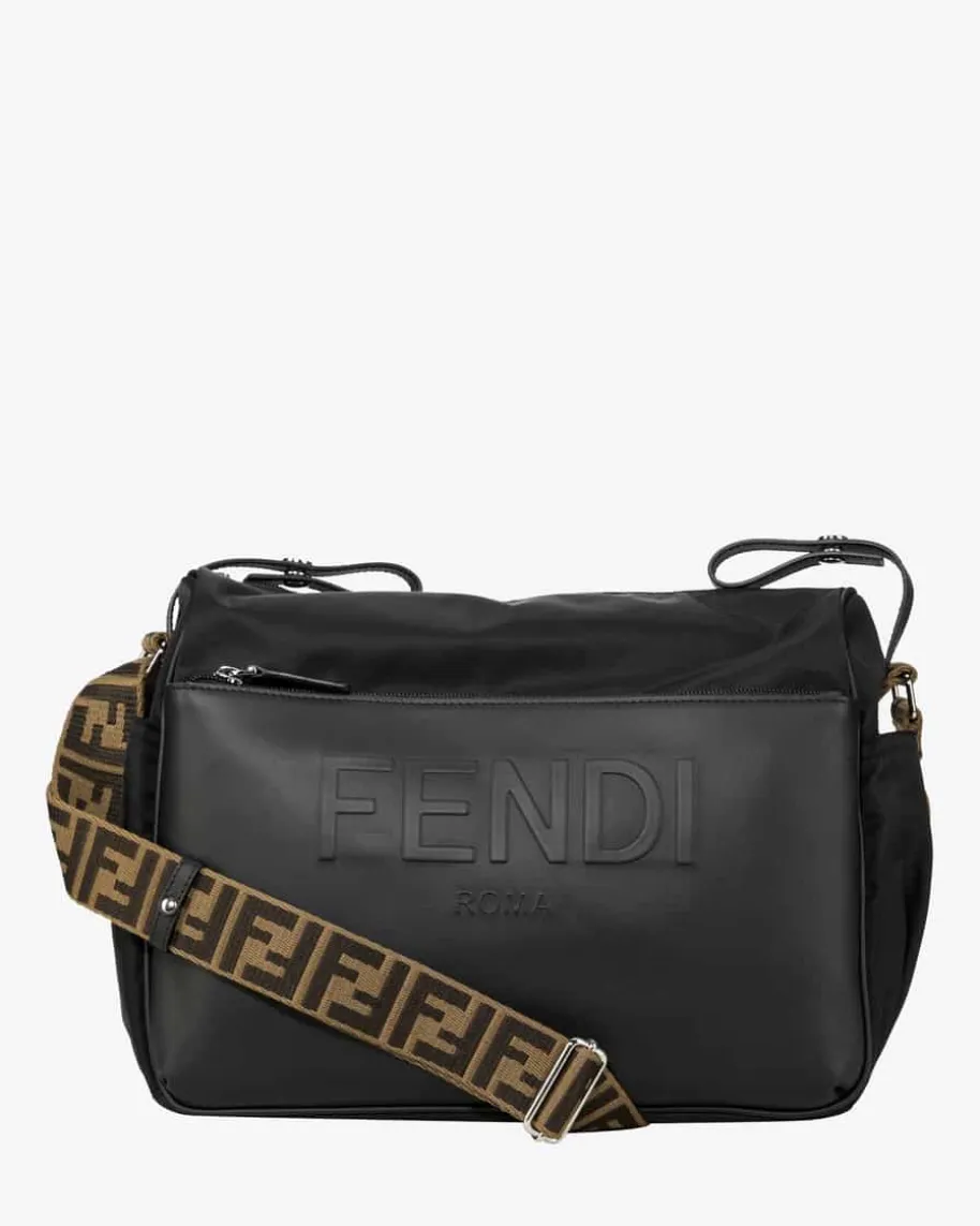 Wickeltasche für Babys von Fendi Kids in Schwarz. Das Modell aus hochwertigemLeder überzeugt dank der tonalen Logo-Applikation in schlichter Eleganz, währenddas geräumige Hauptfach sowie die vielen Seitenfächer die Wickeltasche zu einempraktischen Begleiter für den Alltag mit Ihrem Baby machen.