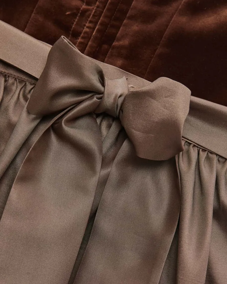 Wiesndirndl lang mit Schürze für Damen von LODENFREY München 1842 in Braun undHellbraun. Dank der Verwendung von hochwertiger Baumwollsamt-Qualität im Miederund einem feinen Ornament-Muster im Rock wird ein traditioneller Favorit mitminimalistischem Charme kreiert. Die changierende Schürze mit Seide rundet dasTrachten-Gesamtbild harmonisch ab.