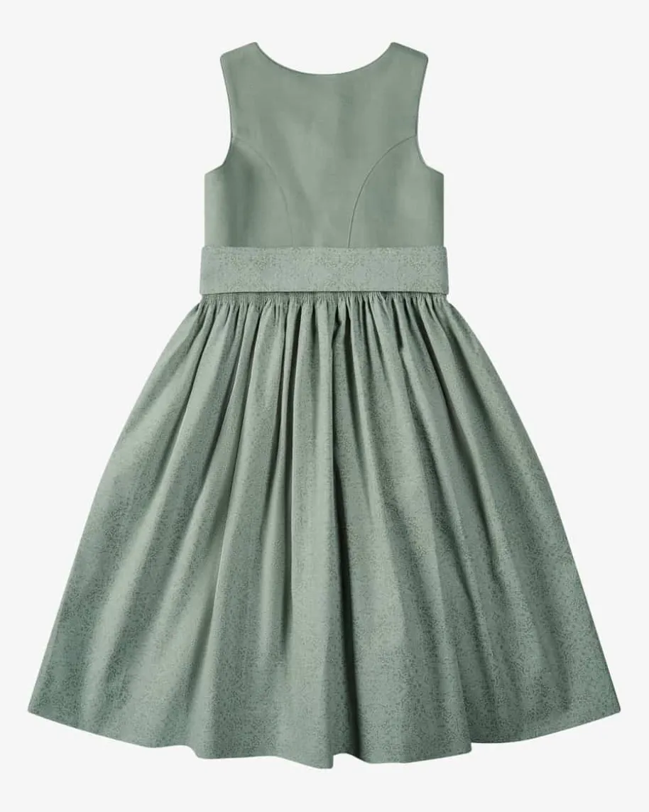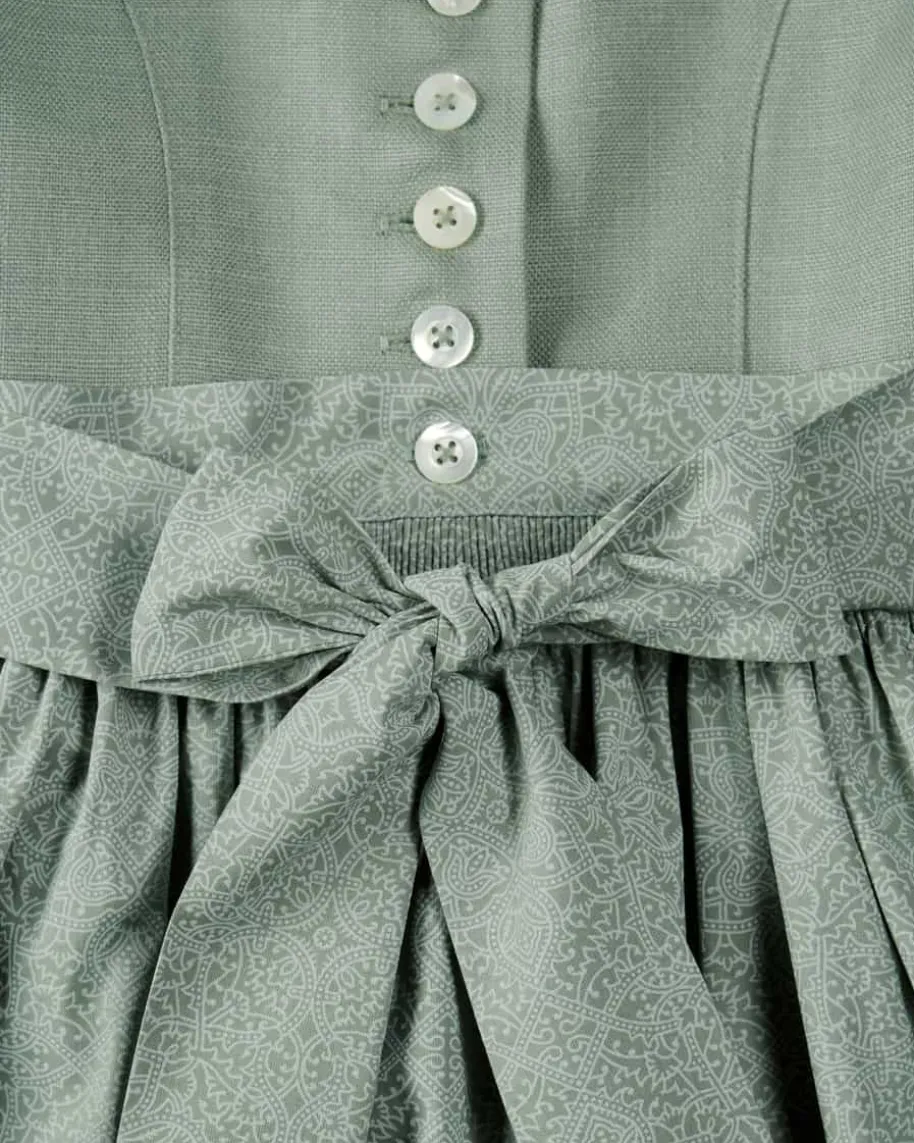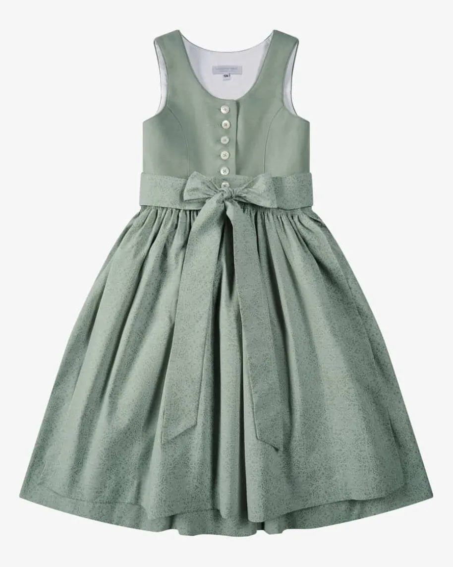 Wiesndirndl mit Schürze für Mädchen von LODENFREY in Salbei. Dank derklassischen Schnittführung und dem Leinen-Mieder begeistert das süße Modell mitmodernem Charme. Zugleich sorgen der Rock mit floralen Ornamenten und die tonalgemusterte Schürze für optische Highlights.
