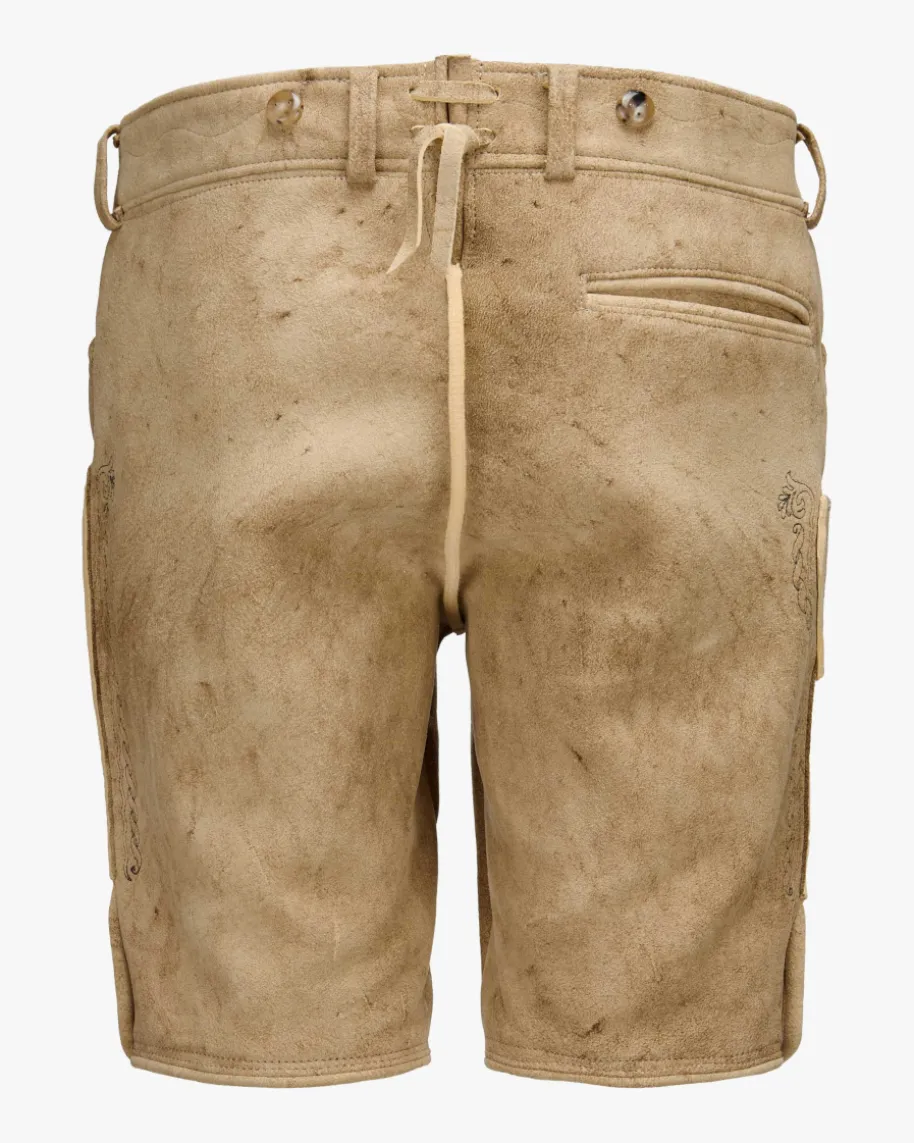 Wiesnlederhose kurz für Herren von LODENFREY in Beige. Die LODENFREYWiesnlederhose überzeugt mit klassischen Details, kontrastfarbigenMotivstickereiensowie edler Hirschveloursleder-Qualität und ist dadurch ein besonderes Highlightfür traditionelle Trachten-Looks.