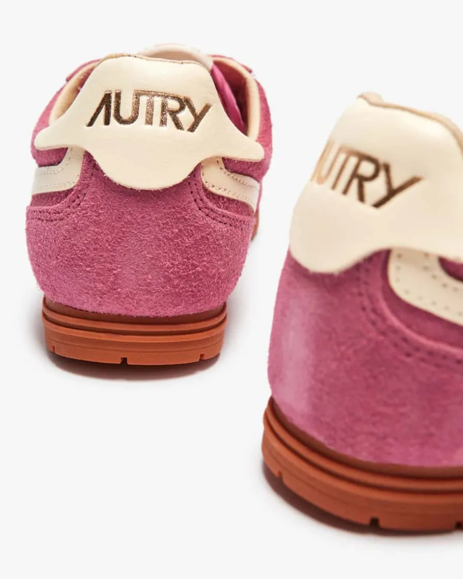 Windspin Low Sneaker für Damen von Autry in Himbeere und Creme. Das Modellpräsentiert sich in hochwertiger Veloursleder-Qualität, die sowohl haptisch undoptisch überzeugt, während das sportive Design modische Akzente setzt. Dasweiche Frottee-Innenfutter garantiert zudem einen angenehmen Tragekomfort.