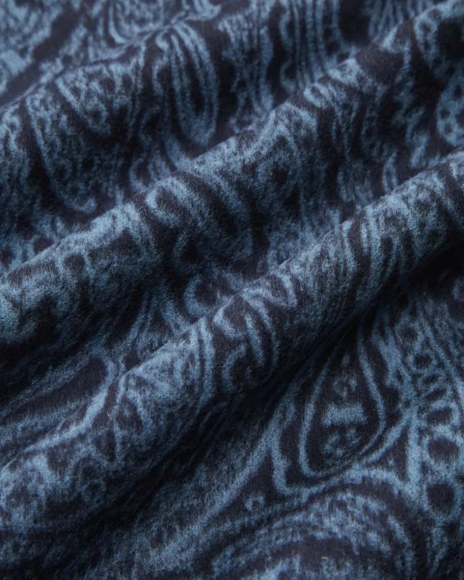 Woll-Cape für Damen von Etro in Navy und Hellblau. Das weite Modell punktet dankhochwertigem Woll-Cashmere-Mix mit einer weichen Haptik, während daslabeltypische Paisley-Dessin den Look stilvoll in Szene setzt. Für ein optischesHighlight sorgt zudem das tonale Lederband mit Quasten-Detail.