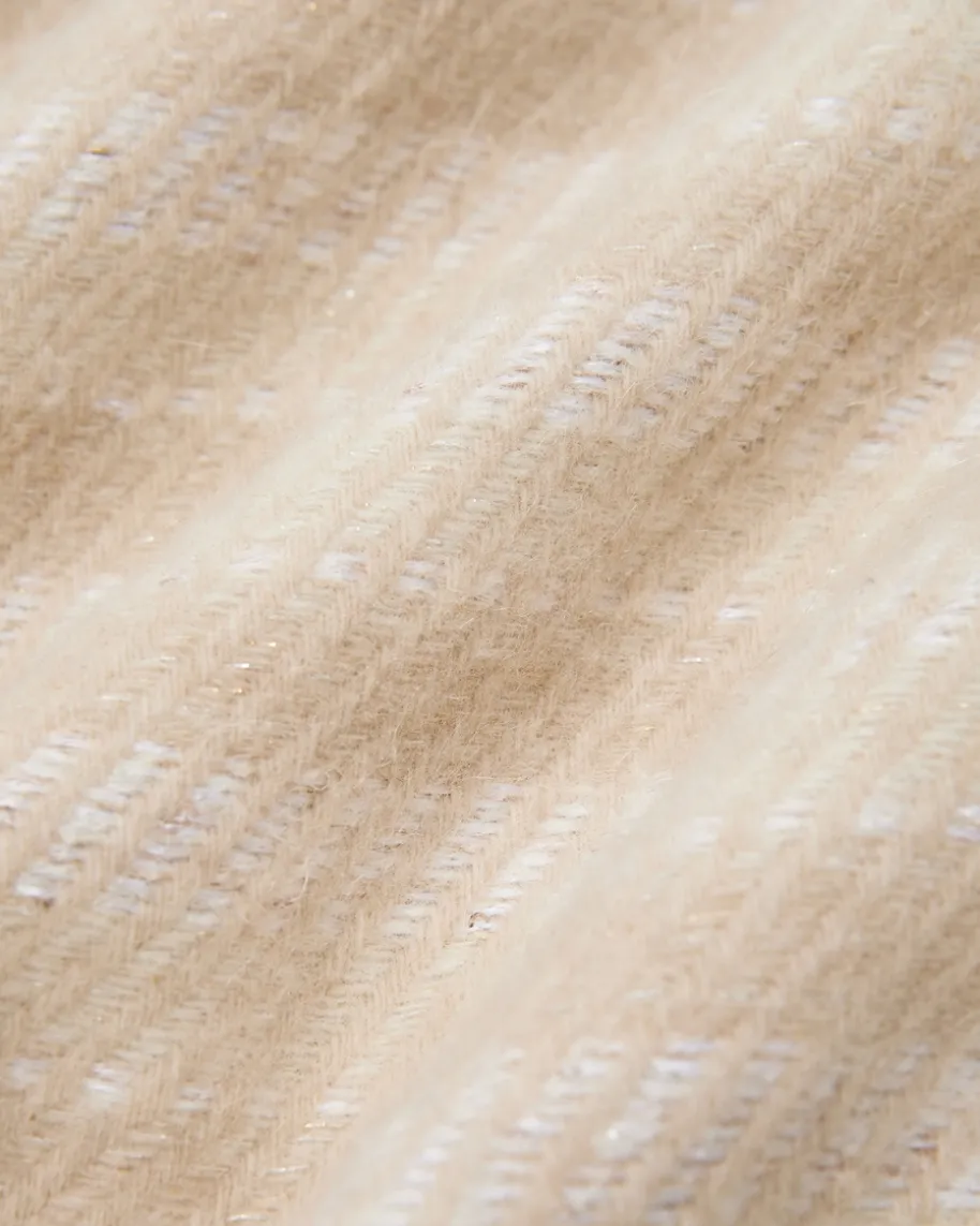 Woll-Cape für Damen von Peserico in Beige und Creme. Das Modell im Oversize-Lookpunktet mit vielseitigen Layering-Kombinationsmöglichkeiten, während derhochwertige Woll-Cashmere-Mix mit dezentem Streifenmuster und zarten Paillettenfür angenehme Tragemomente sorgt und zugleich optisch überzeugt.