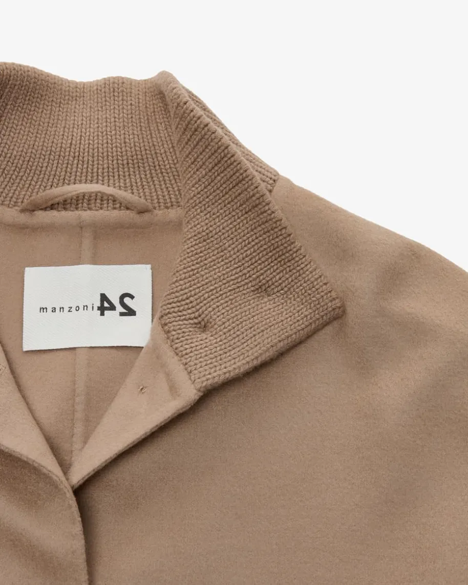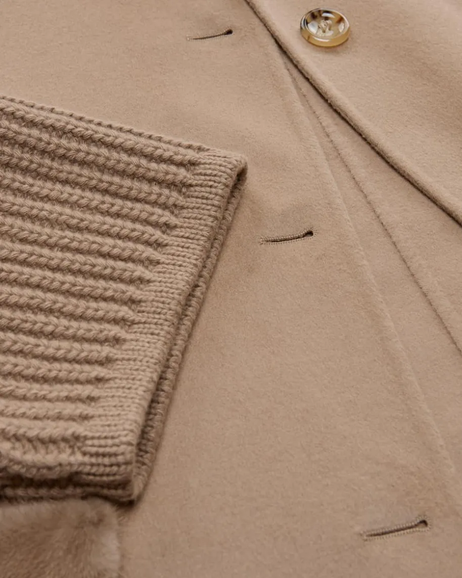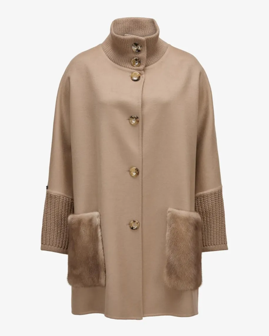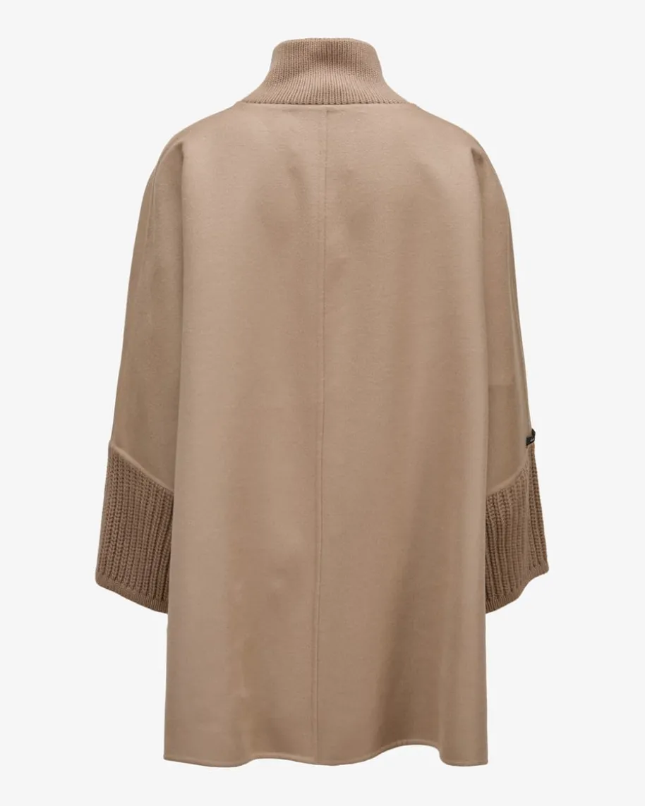 Wollcape für Damen von Manzoni 24 in Caramel. Gefertigt aus einem Mix aushochwertiger Schurwolle und Cashmere besticht das Modell mit einer einzigartigenHaptik, während Details aus Rippstrick und Echtpelz modische Akzente setzen.