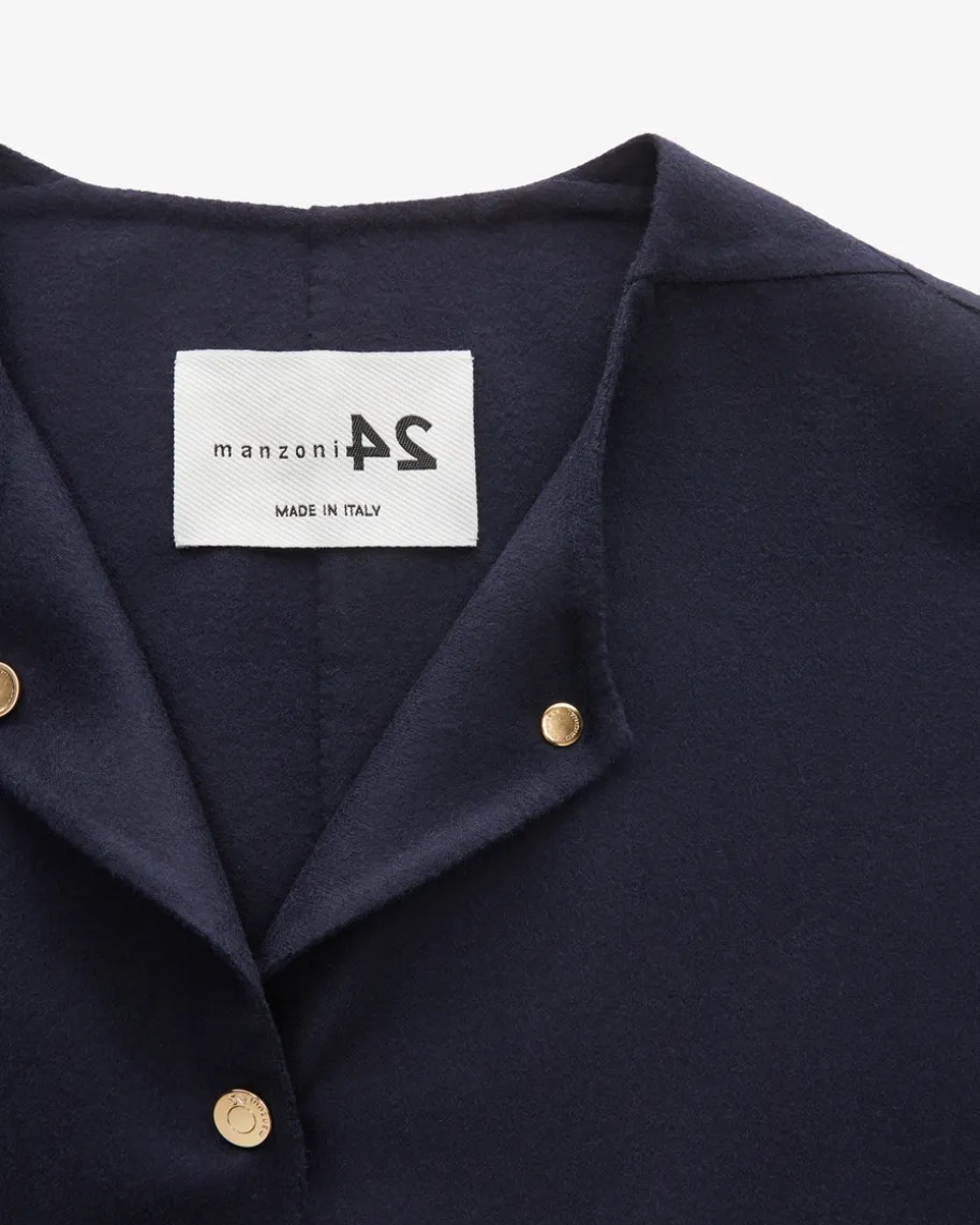 Wolljacke für Damen von Manzoni 24 in Navy. Das italienischeLabel besticht mit zeitloser Eleganz sowie Hochwertigkeit.Auch dieses Modell in edler Woll-Qualität überzeugt alszeitloser Favorit für stilvolle Looks, während die weitePassform sowie goldfarbene Logo-Knöpfe das Gesamtbildharmonisch vollenden.