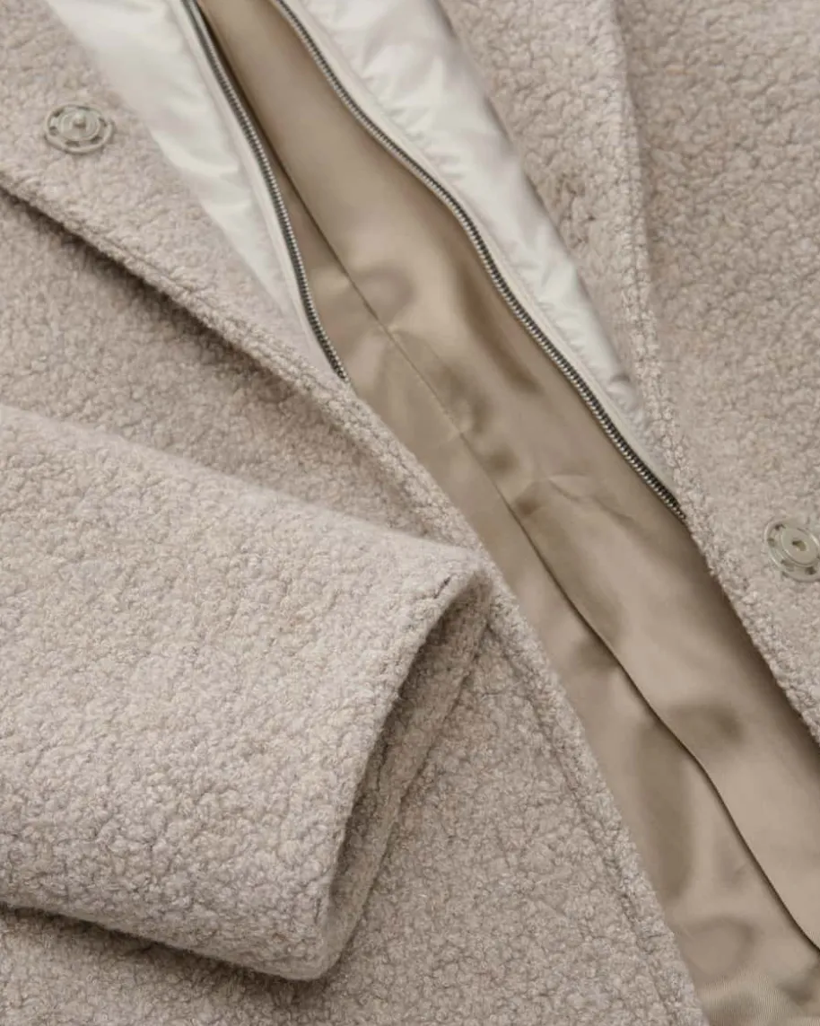 Wolljacke für Damen von Cinzia Rocca in Taupe. Seit den 1980er-Jahren stehtCinzia Rocca Damenmode für Urban Couture Luxus. Auch dieses Modell mit großerKapuze zeichnet sich durch die Verwendung von hochwertigem Woll-Mix in weicherBouclé-Optik aus, während die heraustrennbare Stehkragen-Blende zusätzlichenKomfort bei unbeständigem Wetter bietet.