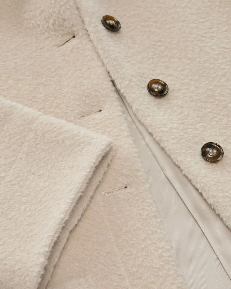 Wolljacke für Damen von Cinzia Rocca in Creme. Seit den 1980er-Jahren stehtCinzia Rocca Damenmode für Urban Couture Luxus. Das Modell punktet dankhochwertigem Alpakawoll-Mix sowohl mit besonderer, strukturierter Haptik alsauch edler Optik, während die weite Passform mit markanten Seitenschlitzen denmodernen Look gekonnt in Szene setzt.