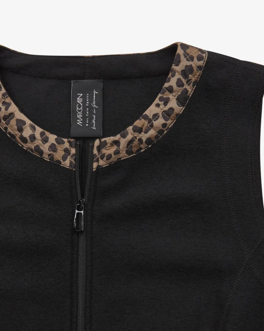 Wollkleid für Damen von Marc Cain in Schwarz und Braun. Zeitgemäße Styles mitsportivem Touch – Das Minikleid überzeugt dank der reinen Schurwoll-Verarbeitungmit weicher Haptik und eleganter Optik, welche durch die gesteppten Details mitLeopardenmuster modern unterstrichen wird.