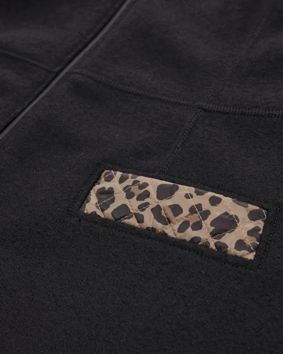 - Gesteppte Details mit Leomuster