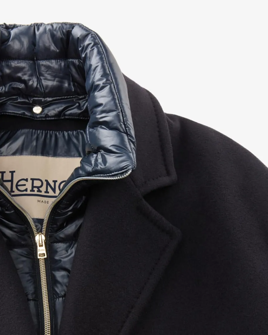 Wollmantel für Damen von Herno in Navy. Das italienische Traditionsunternehmenentwirft seit vielen Jahren luxuriöse Jacken. Mit diesem gefütterten Modell hatdas Label einen eleganten Übergangs-Begleiter mit hochwertiger Manteco-Schurwolle geschaffen, welcher dank der heraustrennbaren Stepp-Blende mitStehkragen individuelle Tragemöglichkeiten mit sportivem Touch und zusätzlicheWärme-Isolierung garantiert.