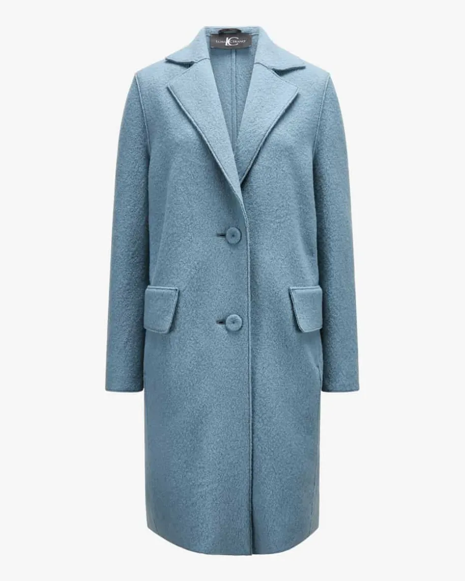 Wollmantel für Damen von Luisa Cerano in Blaugrau. Das Modell in hochwertigerSchurwolle überzeugt mit angenehmen Tragemomenten, während die schlichteAufmachung einen zeitlosen Begleiter für elegante Übergangslooks schaffen.