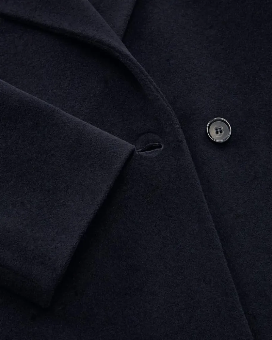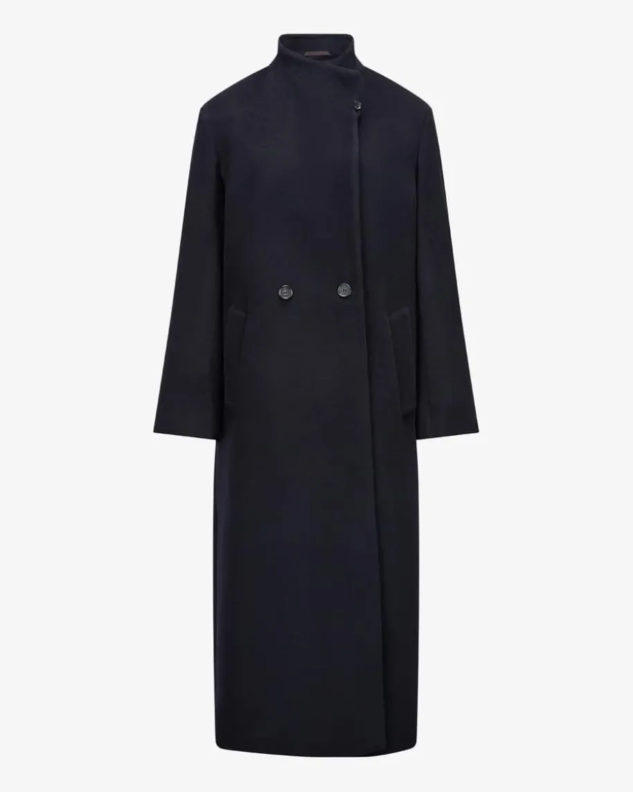 Wollmantel für Damen von Windsor in Navy. Das Modell überzeugt dank demhochwertigen Woll-Mix mit einer weichen Haptik, während die zweireihigeAufmachung sowie der variable Reverskragen mit Knopf-Verschluss das Gesamtbildklassisch-elegant vollenden.