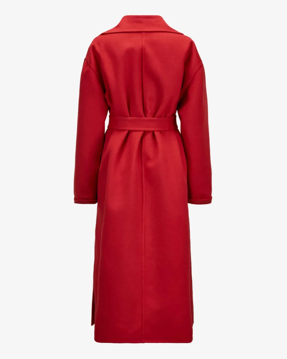 Wollmantel für Damen von Fabiana Filippi in Rot. Das Modell begeistert mitweichem Merinowolle-Cashmere-Mix in hochwertiger Doubleface-Verarbeitung, diefür angenehmen Tragekomfort sorgt. Die weite Passform mit klassischen Detailswird mit feinen Schmuckketten-Applikationen an den Ärmelenden gekonntabgerundet.
