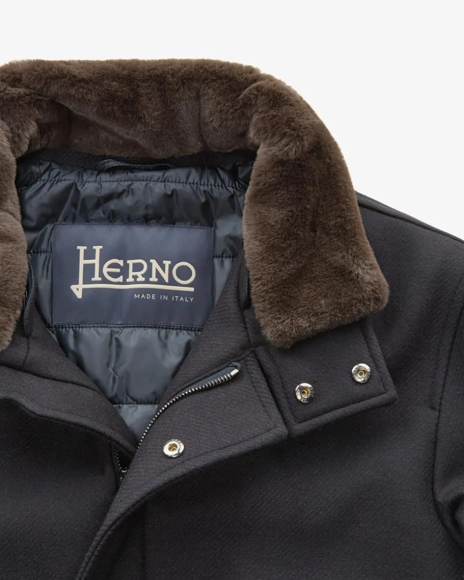 Wollmantel für Herren von Herno in Stein. Das italienische TraditionsunternehmenHerno entwirft seit vielen Jahren luxuriöse Jacken. Auch dieses verkürzte Modellbegeistert im hochwertigen Woll-Mix, der für angenehme Tragemomente an kühlerenTagen sorgt. Die gerade Passform mit abnehmbarem Fake-Fur Kragen rundet denStyle edel ab.