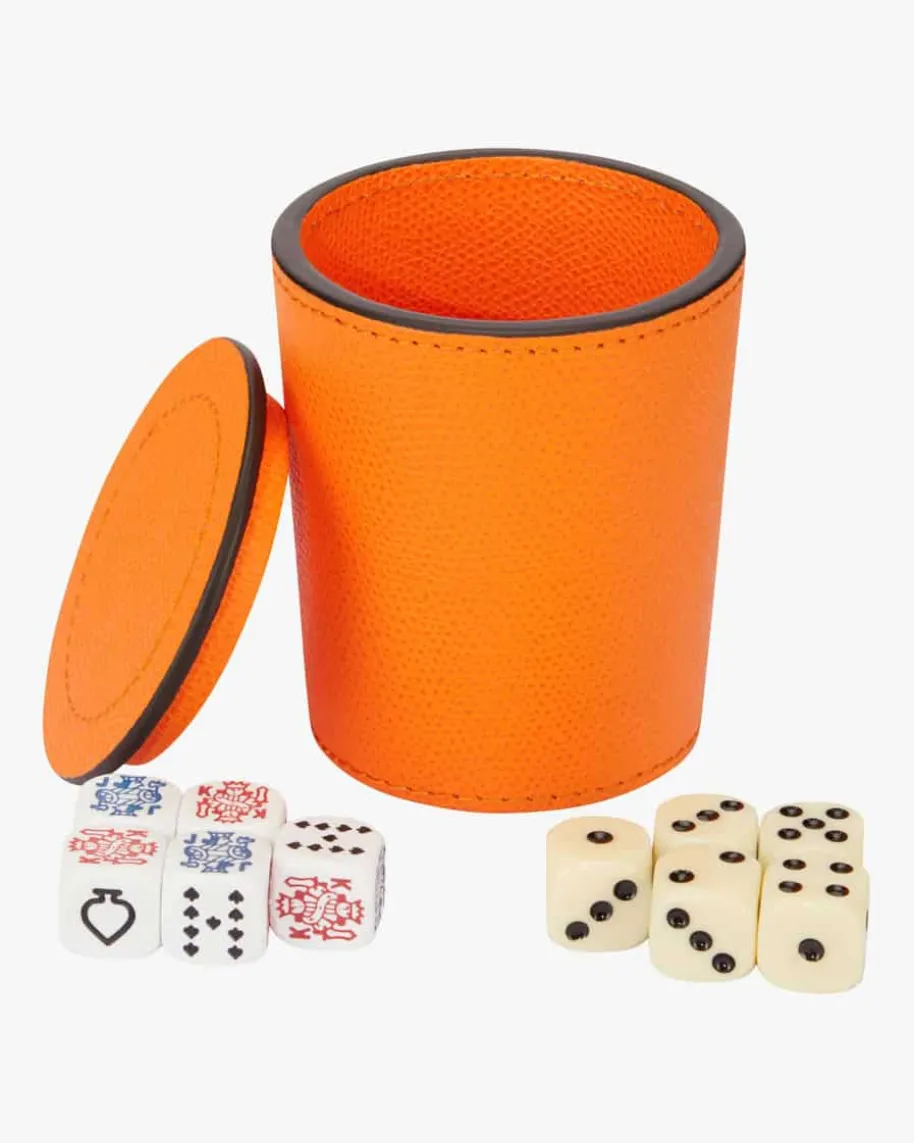 Würfelbecher von Giobagnara in Orange. Handmade in Italy – Mit diesemWürfelbecher hat das Label ein exklusives Essential aus Leder geschaffen, dasbei keinem Spieleabend fehlen darf.