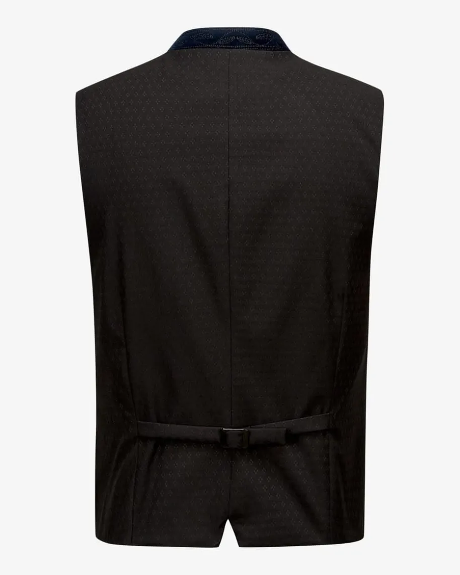 Konstantin NS Trachtenweste für Herren von Gottseidank in Dunkelblau, Hellblauund Schwarz. Das exklusiv bei LODENFREY erhältliche Modell besticht durch dietraditionelle Aufmachung, welche dank filigraner Kugelknöpfe und dem stilvollenMuster gekonnt unterstrichen wird. Zugleich ergänzen edle Samt-Details denTrachten-Look harmonisch.