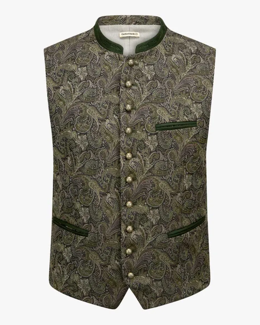 Konstantin ST Trachtenweste für Herren von Gottseidank in Moosgrün, Rosa undSchwarz. Das exklusiv bei LODENFREY erhältliche Modell besticht durch dietraditionelle Aufmachung, welche dank filigraner Kugelknöpfe und dem stilvollenMuster gekonnt unterstrichen wird. Zugleich ergänzen edle Details den Trachten-Look harmonisch.