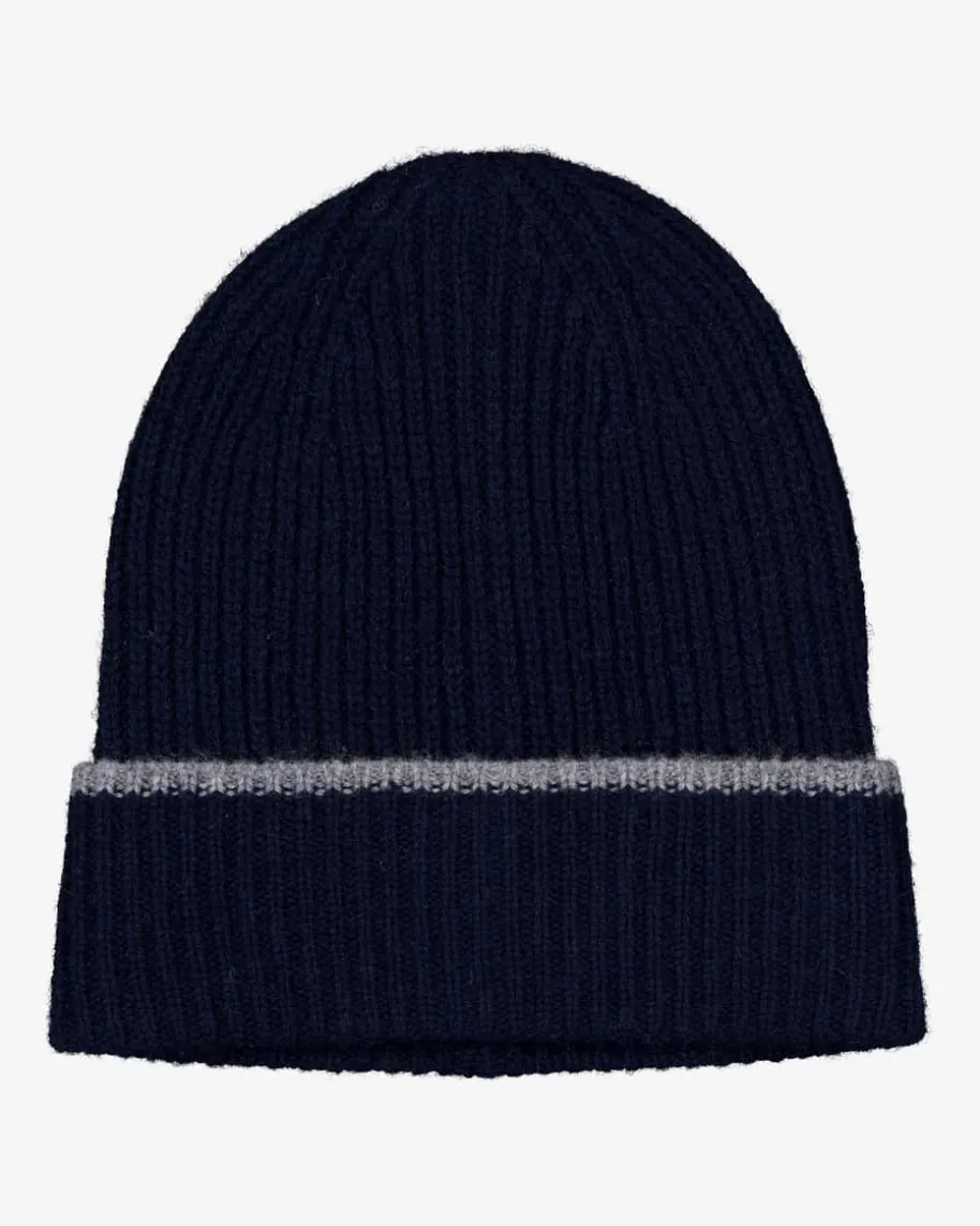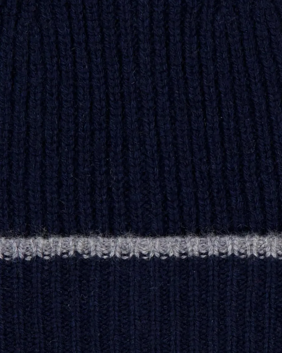 Loni Cashmere-Mütze für Babys von Papa Lobster in Blau und Grau. Das in Italienhandgefertigte Modell begeistert mit hochwertiger Cashmere-Qualität, welchehohen Tragekomfort bietet. Zugleich verleiht der feine Kontrast-Streifen demGesamtbild eine besondere Note.