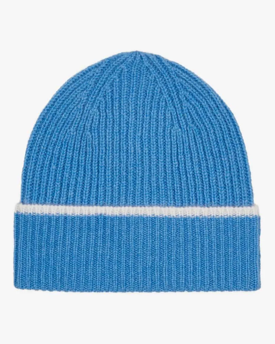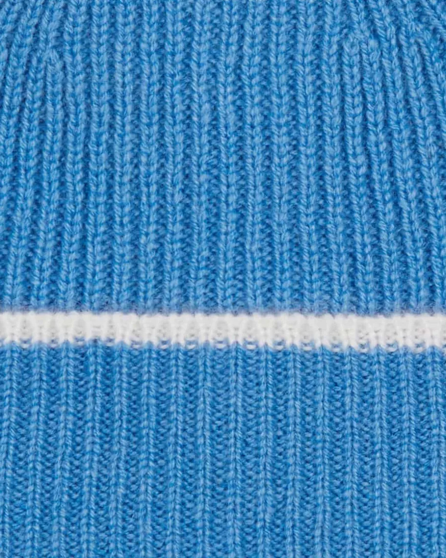 Loni Cashmere-Mütze für Babys von Papa Lobster in Blau und Weiß. Das in Italienhandgefertigte Modell begeistert mit hochwertiger Cashmere-Qualität, welchehohen Tragekomfort bietet. Zugleich verleiht der feine Kontrast-Streifen demGesamtbild eine besondere Note.