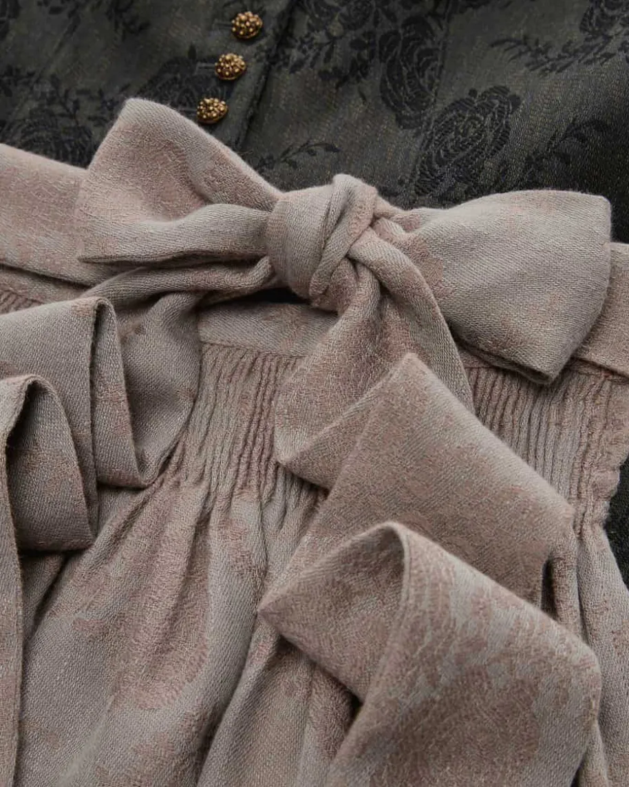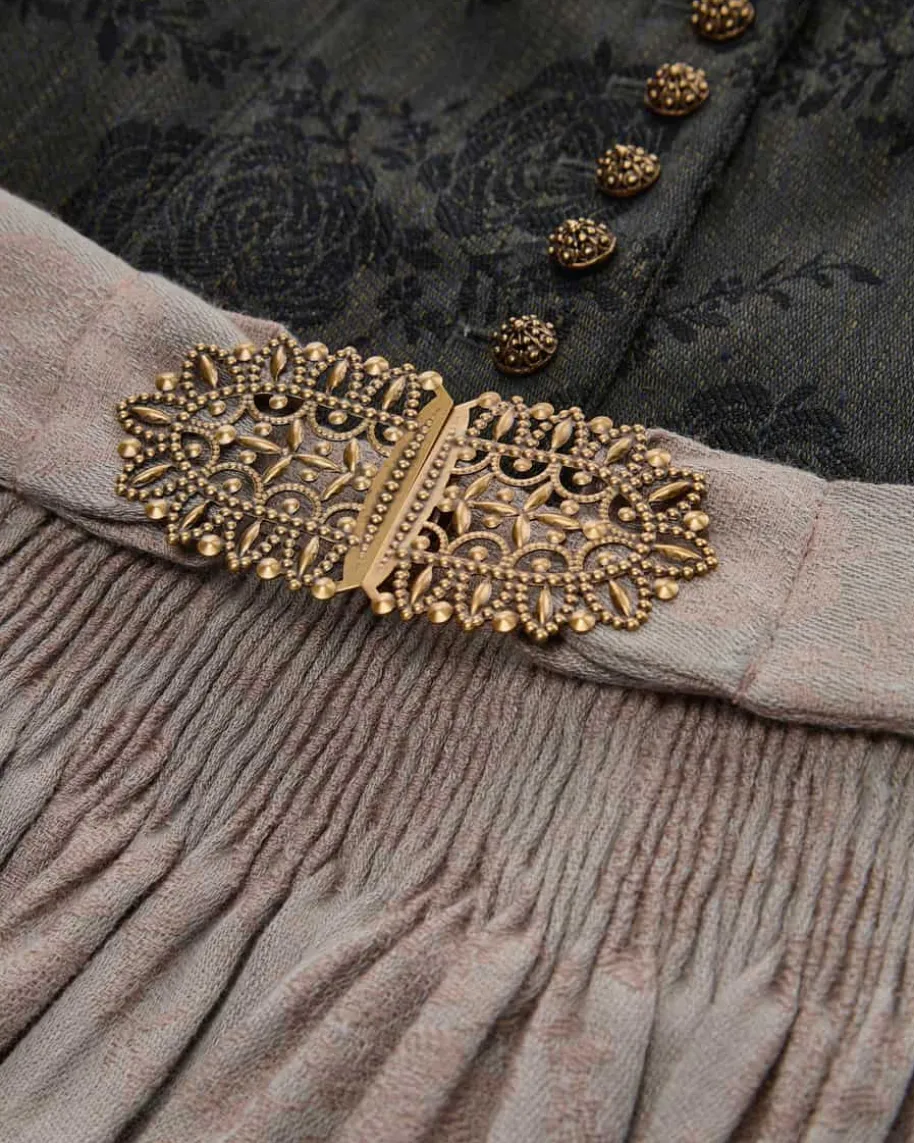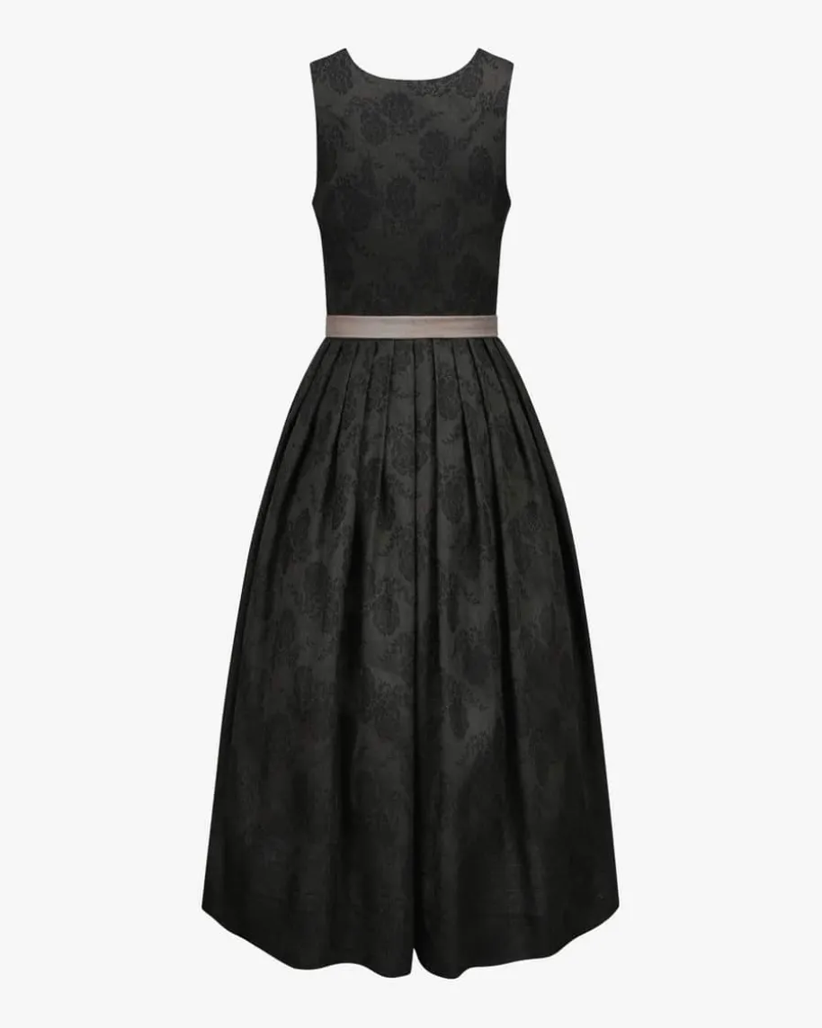 Monika Dirndl lang mit Schürze für Damen von Gottseidank in Schwarz, Taupe undHellgrau. Tracht mit modernem Zeitgeist – Dank des floralen Jacquard-Musters inhochwertiger Leinen-Schurwoll-Qualität begeistert das Modell mit traditionellerAufmachung. Zugleich rundet die gestiftelte Schürze mit labeltypischen,austauschbaren Schürzenbändern den Look gekonnt ab.