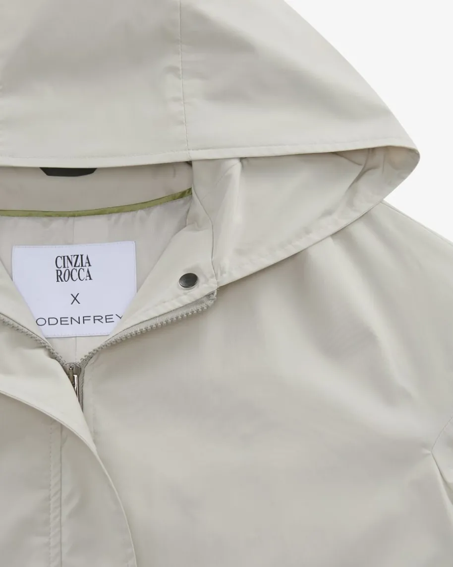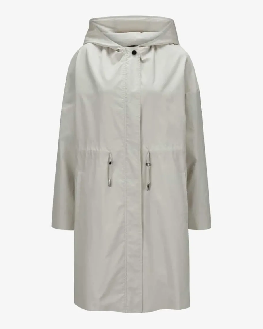 Regenmantel für Damen von Cinzia Rocca in Stein. Das Modell präsentiert sichdank der cleanen Aufmachung mit wasserfester Eigenschaft als funktioneller wieauch zeitlos-moderner Übergangs-Favorit, während die legere Silhouette durch denTaillenzug feminin akzentuiert werden kann.