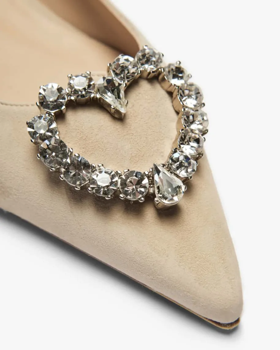 Santana Ballerinas für Damen von Festa in Nude. Das feminine Modell bestichtdurch die Verwendung von hochwertigem Veloursleder, das zusammen mit der spitzenForm und dem dezenten Absatz den Schuh zu einem festlichen Begleiter avancierenlässt. Gleichzeitig rundet die markante herzförmige Brosche mit Schmuckstein-Applikationen das Design elegant ab.