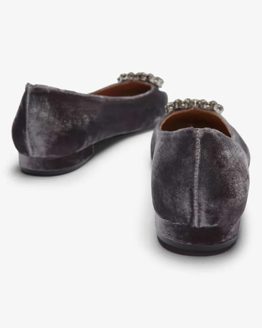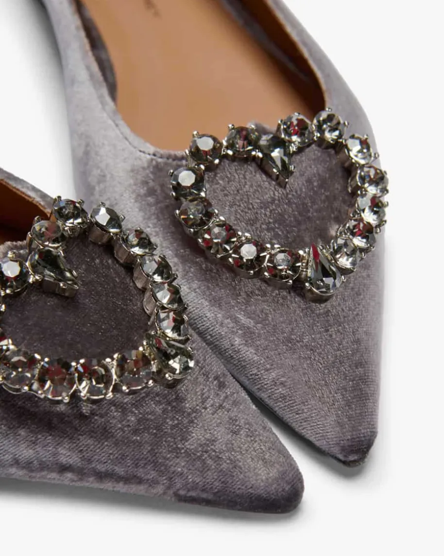 Santana Ballerinas für Damen von Festa in Grau. Das feminine Modellbesticht durch die stilvolle Samt-Aufmachung, welche zusammen mitder spitzen Form und dem dezenten Absatz den Schuh zu einem festlichen Begleiteravancieren lässt. Gleichzeitig rundet die markante herzförmige Brosche mitSchmuckstein-Applikationen das Design elegant ab.
