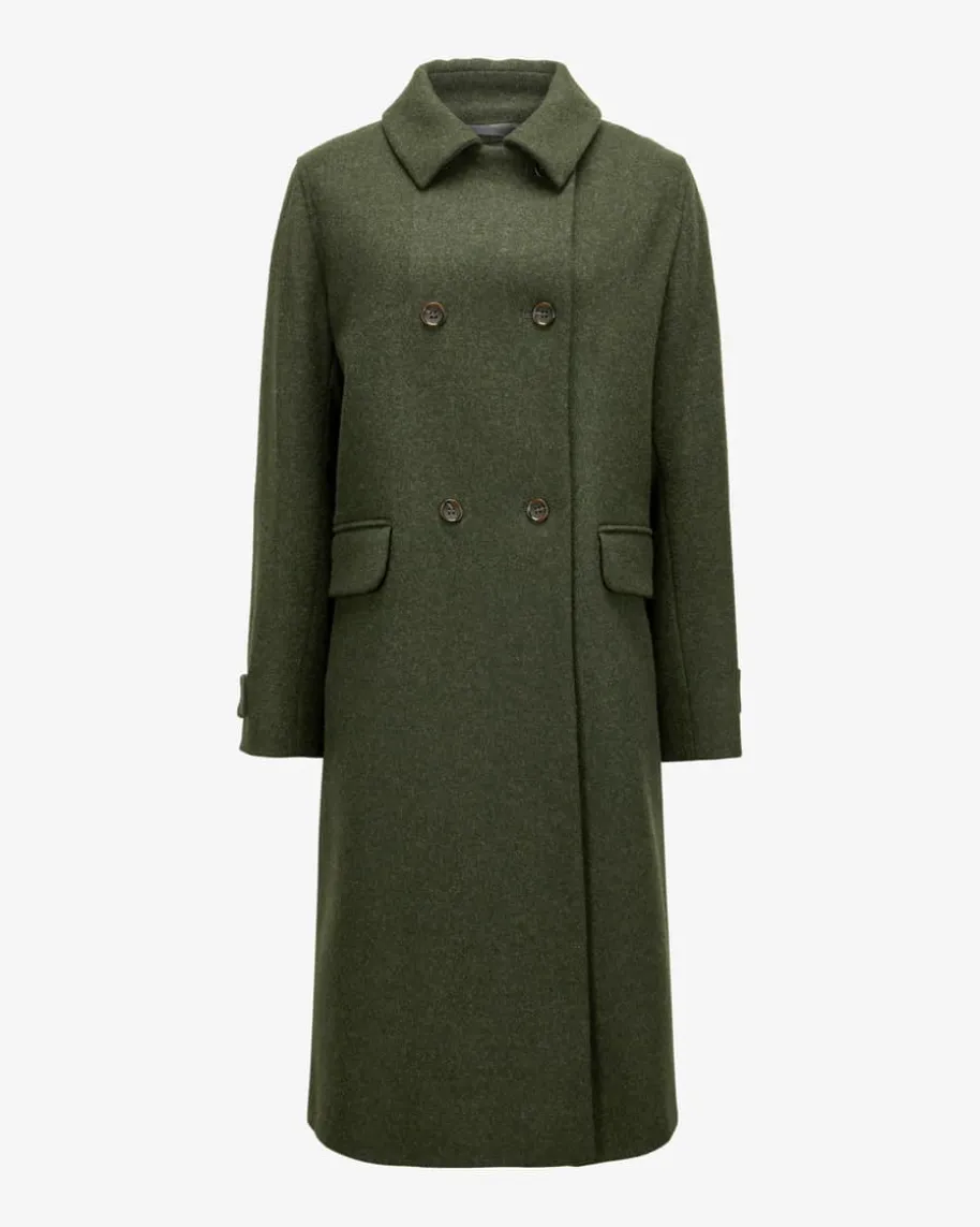 Wollmantel für Damen von Cinzia Rocca in Dunkelgrün. Seit den 1980er-Jahrensteht Cinzia Roccas Damenmode für Urban Couture Luxus. Auch dieses Modellpunktet mit der Verwendung von hochwertiger Schurwoll-Qualität, während diedoppelreihige Knopfleiste sowie diverse dekorative Riegel klassisch-eleganteAkzente setzen.