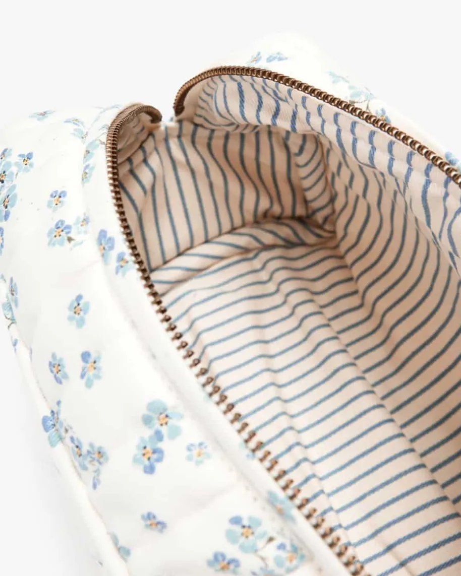 Kulturtasche für Mädchen von Konges Slojd in Off-White, Blau und Gelb. InKollaboration mit Rosie Huntington-Whiteley hat das Label dank hochwertig-verspieltem Design mit Blumenmuster und gestreiftem Innenfutter ein süßesEssential für Ihre Kleine geschaffen – egal ob als Begleiter auf Reisen oder fürZuhause. Zugleich sorgt das Bionic Finish Eco für eine fluorfreieWasserabweisung.