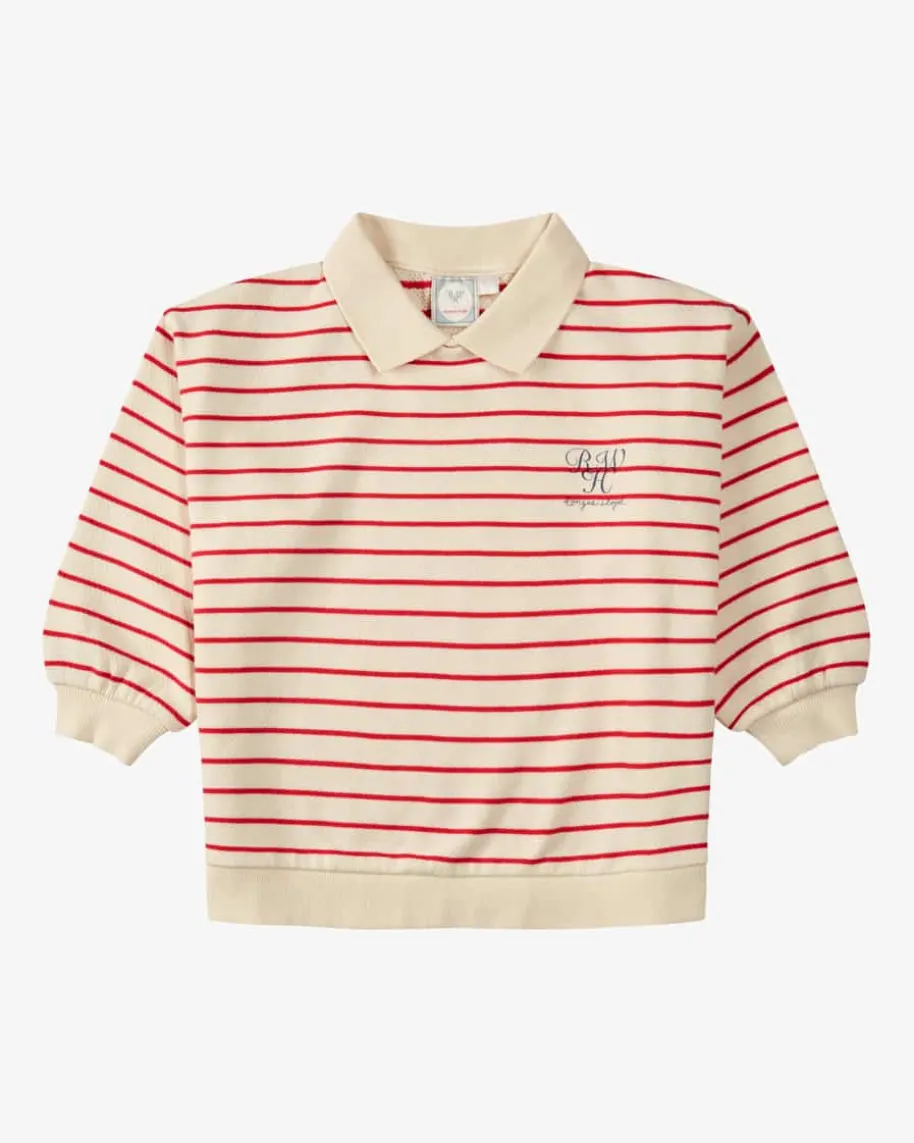 Largo Sweatshirt für Kinder von Konges Slojd in Creme und Rot. Das Modell ausder Rosie Huntington-Whiteley-Kollektion präsentiert sich mit klassischemStreifen-Dessin sowie sportivem Polo-Kragen und avanciert so zum modischenHighlight, während die weiche Baumwoll-Qualität Ihrem Liebling einen angenehmenTragekomfort bietet.