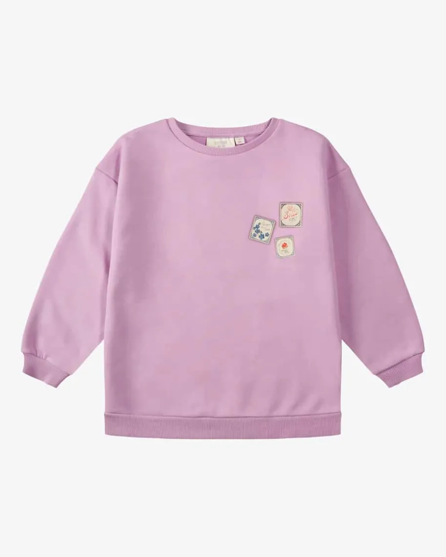 Lettre Sweatshirt für Mädchen von Konges Slojd in Flieder. Das Modell aus derRosie Huntington-Whiteley-Kollektion punktet mit angenehmer Material-Qualitätund legerer Passform. Der niedliche Briefmarken-Print rundet den Look gekonntab.