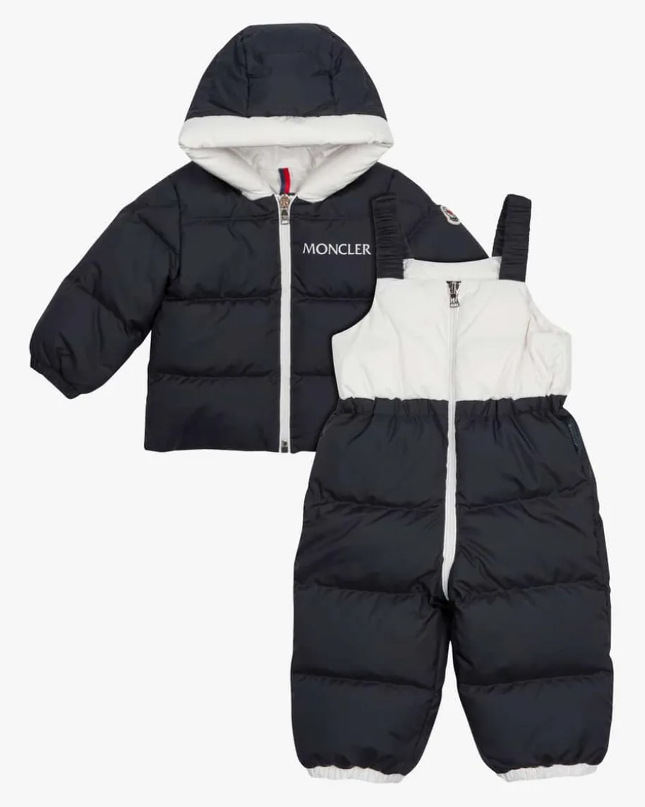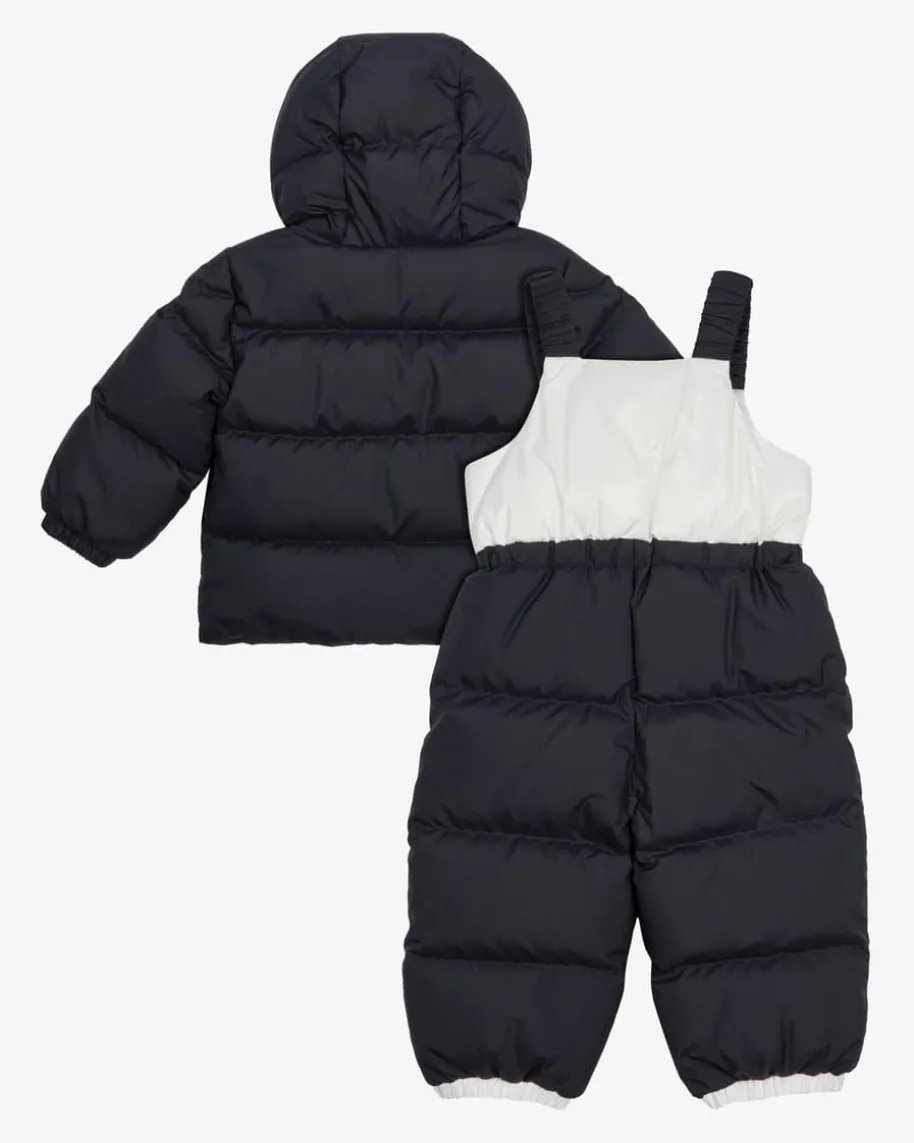 Xola 2-teiliger-Schneeanzug für Mädchen von Moncler Enfant in Navy und Weiß. Daszweiteilige Set präsentiert sich dank mattem, zweifarbigem Stepp-Design inmoderner Aufmachung, während diverse Logo-Details labeltypische Akzente setzen.Zugleich erweist sich das Modell dank der hochwertigen Daunen-Feder-Füllung alsidealer Begleiter für kalte Wintertage.