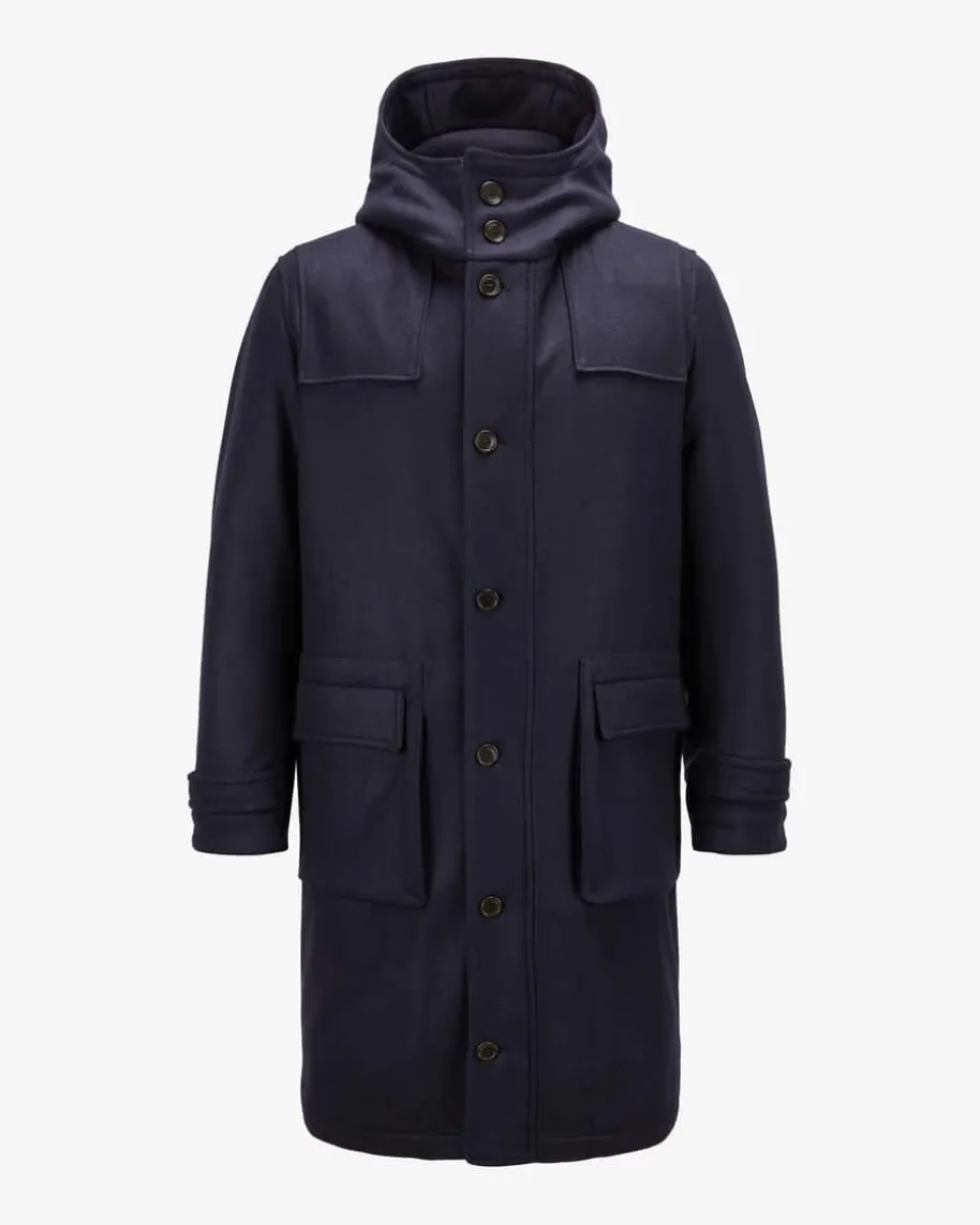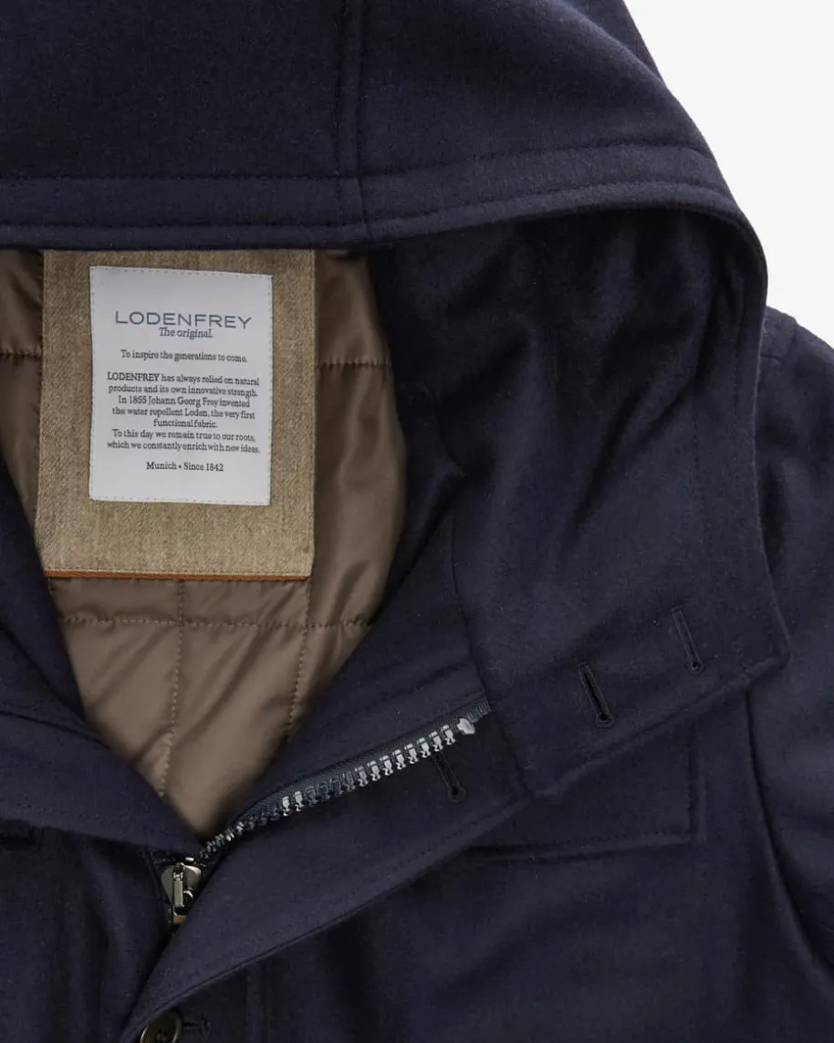 Ystad Wollmantel für Herren von LODENFREY in Navy. Das Modell präsentiert sichdank der hochwertigen Loden-Qualität als stilvoller Begleiter, während Sie dasStepp-Innenfutter sowie der hohe Kapuzenkragen auch an kälteren Tagen optimalwarmhält.