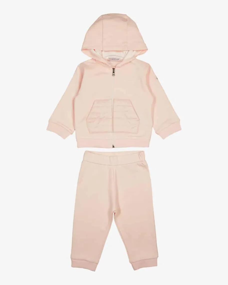 Zweiteiler für Mädchen von Moncler Enfant in Rosa. Das italienische Outdoor-Label mit französischen Wurzeln entwirft nicht nur kreative Kollektionen fürErwachsene, sondern bezaubert auch mit modischen Designs für die ganz Kleinen.Auch dieses zweiteilige Modell begeistert mit elastischer Sweat-Qualität, diefür einen angenehmen Tragekomfort sorgt. Die Kapuze und wattierte Taschen rundenden sportiven Look harmonisch ab.