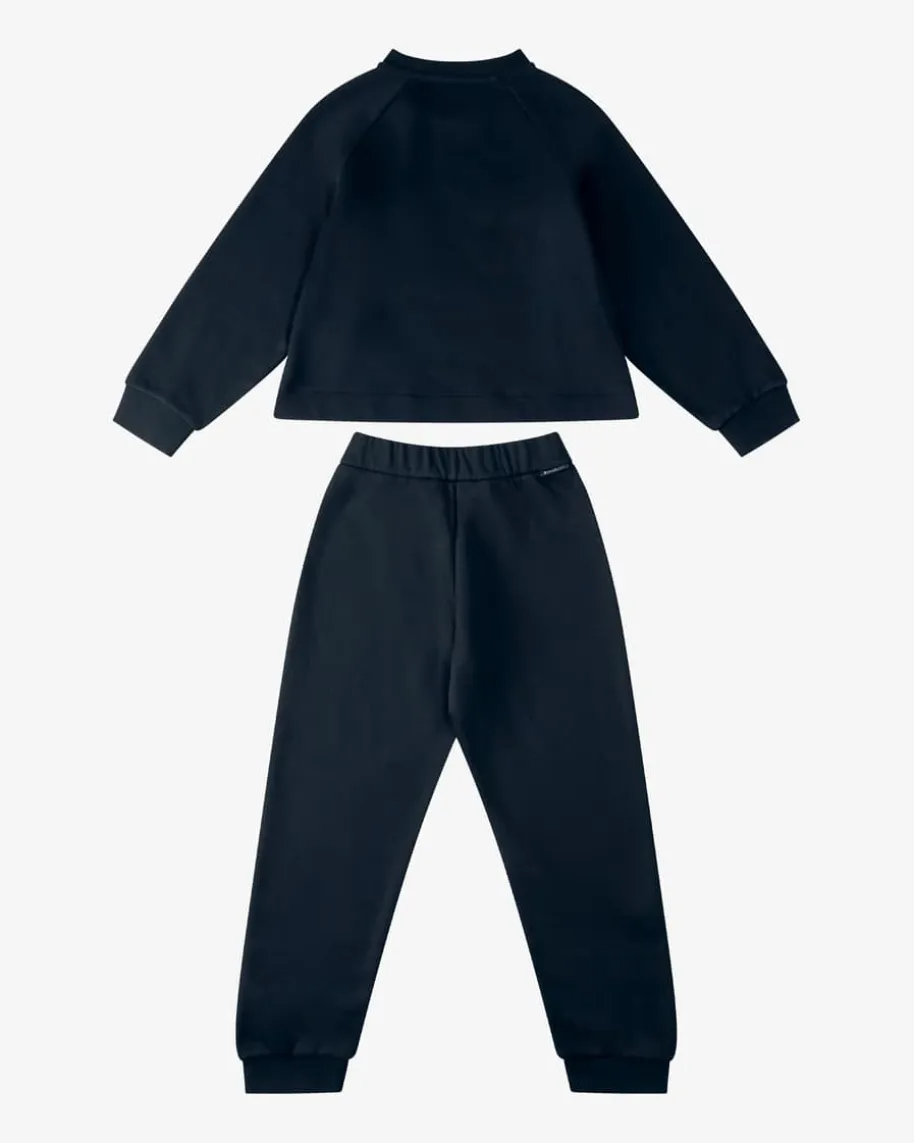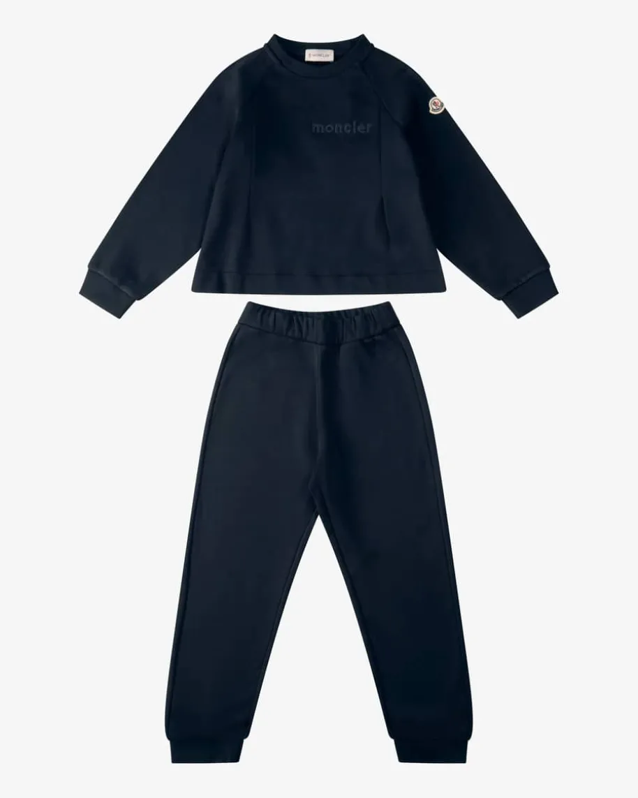 Zweiteiler für Kinder von Moncler Enfant in Navy. Gefertigt aus angenehmerBaumwolle punktet das Modell mit einem weichen Griff, während das schlichteDesign einen vielseitigen Favoriten für Ihre Kleinen kreiert. Ikonische Logo-Details runden das Gesamtbild gekonnt ab.