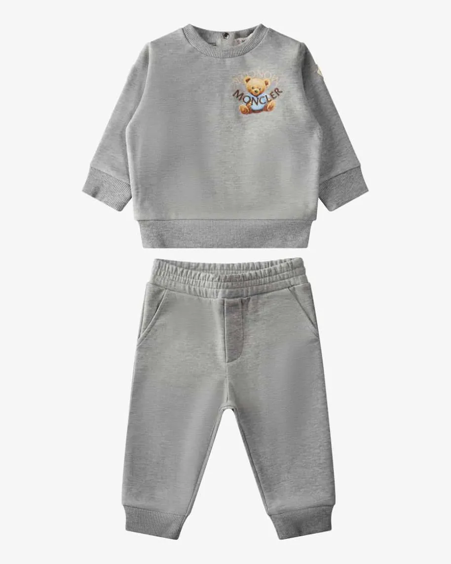 Zweiteiler für Jungen von Moncler Enfant in Grau. Die im Jahr 2000 lancierteKinderlinie Moncler Enfant bietet vielseitige Looks, die ursprünglich vonfunktionaler Sportbekleidung inspiriert sind. Das zweiteilige Modell aus softerBaumwolle überzeugt durch angenehmen Tragekomfort und eine legere Silhouette –ideal für den vielseitigen Alltag Ihrer Kleinen. Der Teddy-Print rundet zusammenmit Logo-Details das Design niedlich ab.