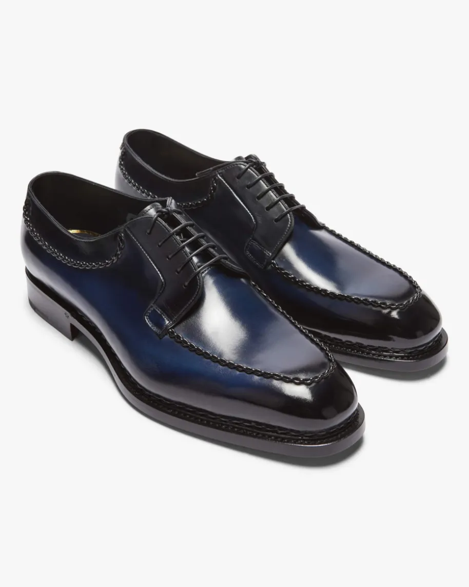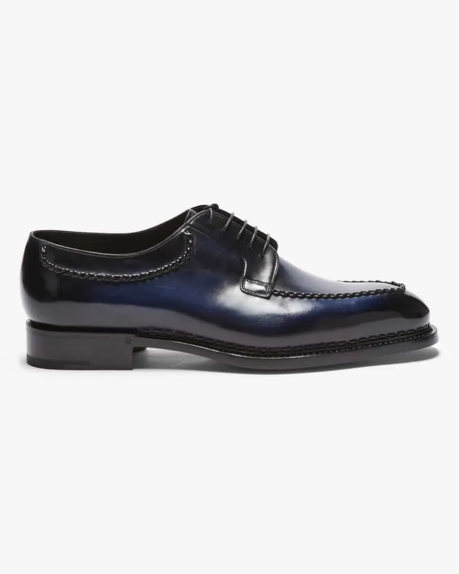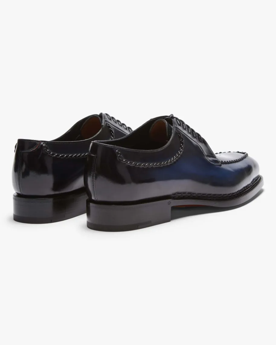 Fortuna Derby-Schuhe für Herren von Santoni in Dunkelblau.Die italienischeLuxusmarke steht für handgefertigte Schuhe mit makelloserVerarbeitung und edlemFinish. Dieses einzigartige Modell ist Teil der limitiertenMeraviglia-Kollektion, die Santonis 50-jähriges Jubiläum zelebriert.Die hochwertige Lederverarbeitung, die handgefärbteVelatura-Nuance und markante Flecht-Nähte machen den Schuhzu einem eleganten Begleiter für maskuline Looks.