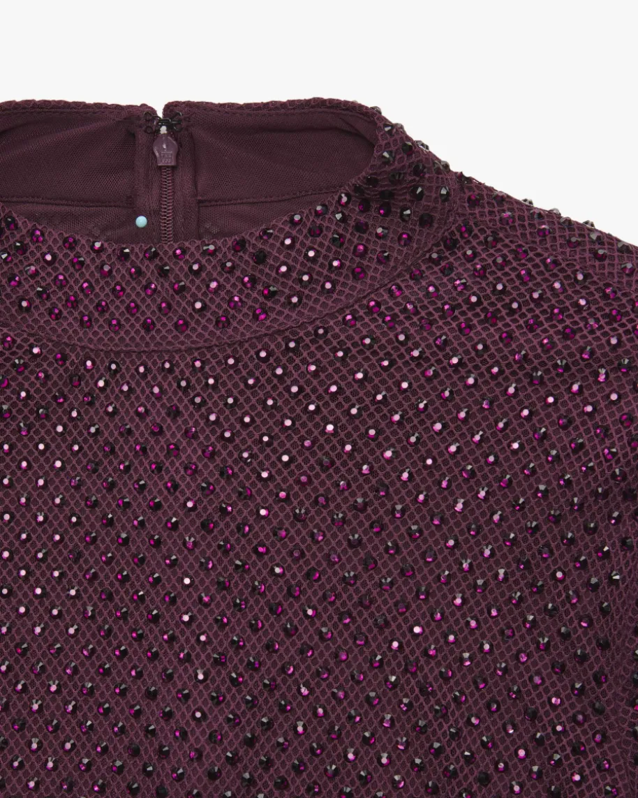 Abendkleid für Damen von Self-Portrait in Aubergine. Das Londoner Label stehtfür moderne Cocktailkleider mit Spitze, Cut-Outs und femininerDetailverliebtheit. Dieses Langarm-Modell präsentiert sich in schwerem, mitSchmucksteinen besetztem Netz-Design mit zweiter, semi-transparenter Mesh-Schicht. Zugleich kreiert die taillierte Fit n‘ Flair-Silhouette mitTrompetenärmeln einen femininen Hingucker-Look für besondere Anlässe.