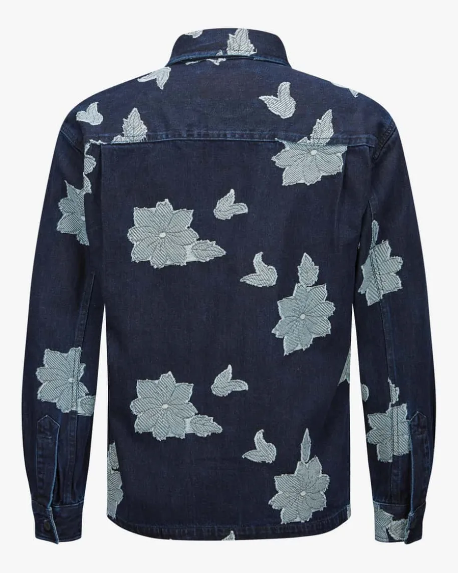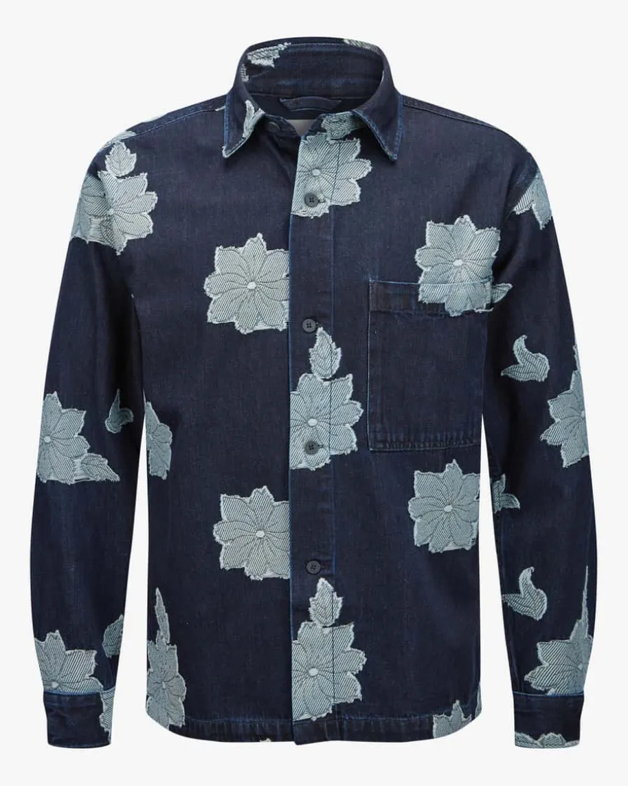 Adwin Jeans-Overshirt für Herren von NN.07 in Dunkelblau und Hellblau. DasModell in fester Haptik und hochwertiger Baumwoll-Qualität überzeugt in floralemDenim-Design, während die klassischen Details einen maskulinen Begleiterschaffen, der einen modernen Casual-Look kreiert.
