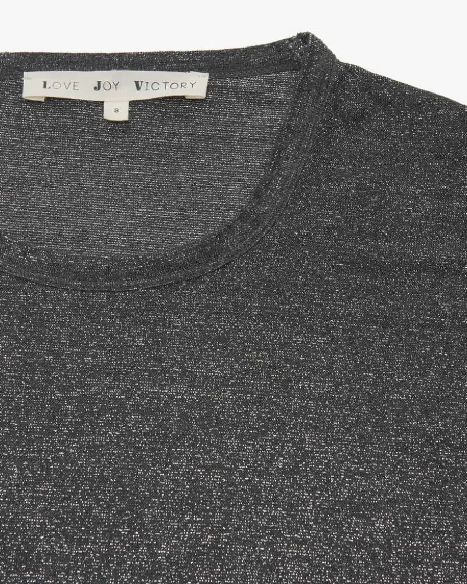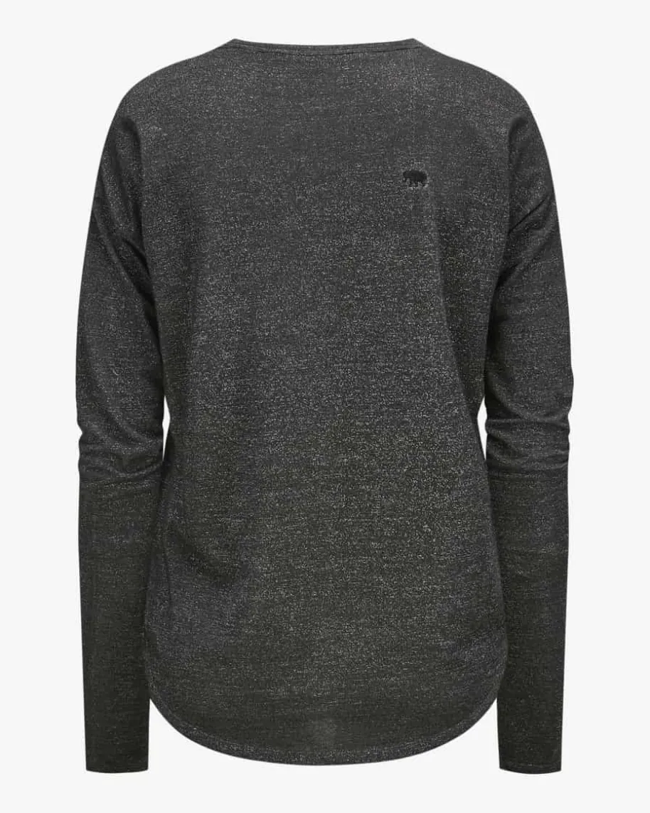 Alania Longsleeve für Damen von Love Joy Victory in Schwarz und Silber. Einperfektes Basic ergänzt mit glitzernder Optik für komfortable Lounge-Looks – DasModell überzeugt dank dem elastischen Material-Mix und der besonders angenehmenSoft-Touch-Qualität mit wahrlichen Wohlfühlmomenten.