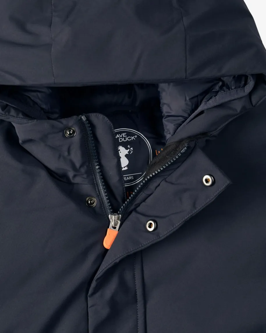 Albi Steppmantel für Jungen von Save the Duck in Nachtblau. Das nachhaltigeModellbegeistert mit mattem Funktionsmaterial, das angenehme Tragemomente verspricht.Die praktische Kapuze mit integriertem Elastikband sowie kontrastierende Detailsrunden den Look für kühlere Tage harmonisch ab.
