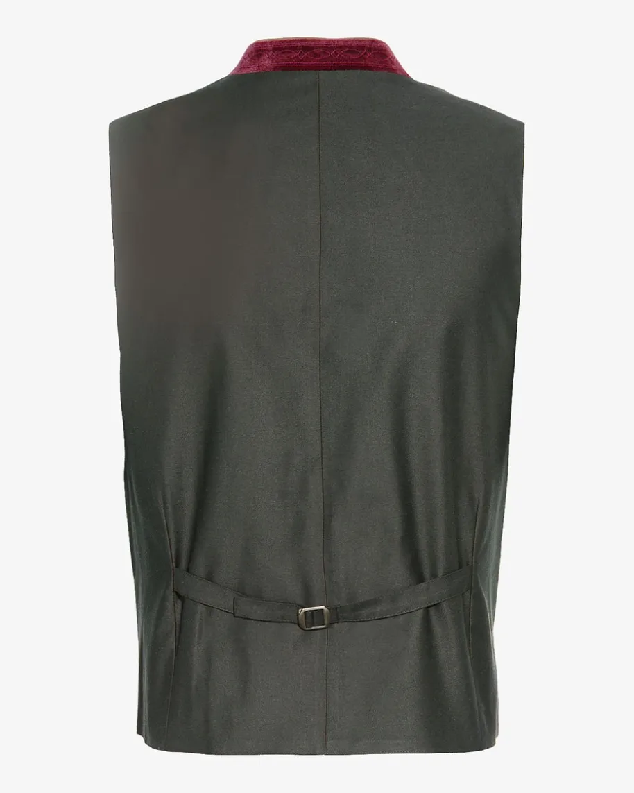 Albrecht Trachtenweste für Herren von Hammerschmid in Bordeaux. Weiches Samt ander Vorderseite, der zeitlose Schnitt sowie die filigranen Stickereien amStehkragen machen die Weste zum stilsicheren Begleiter zur Lederhose.