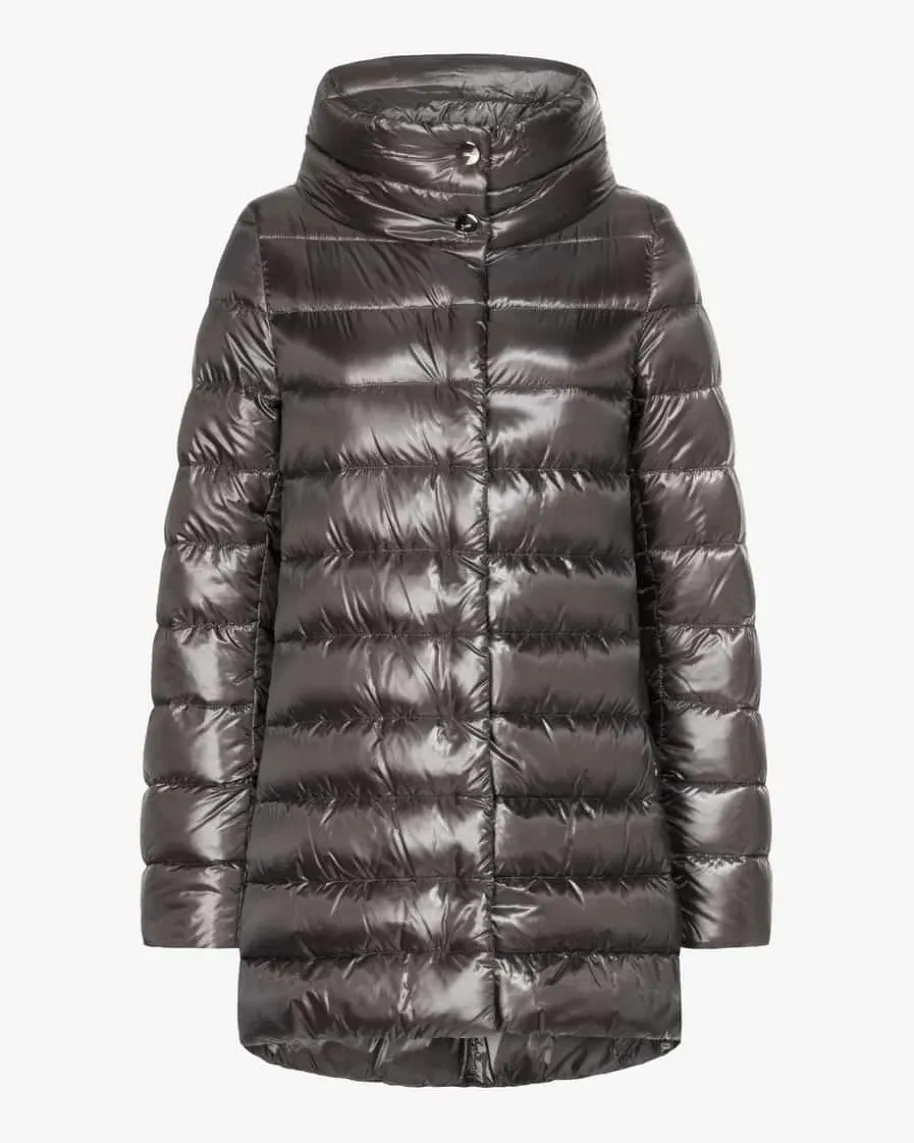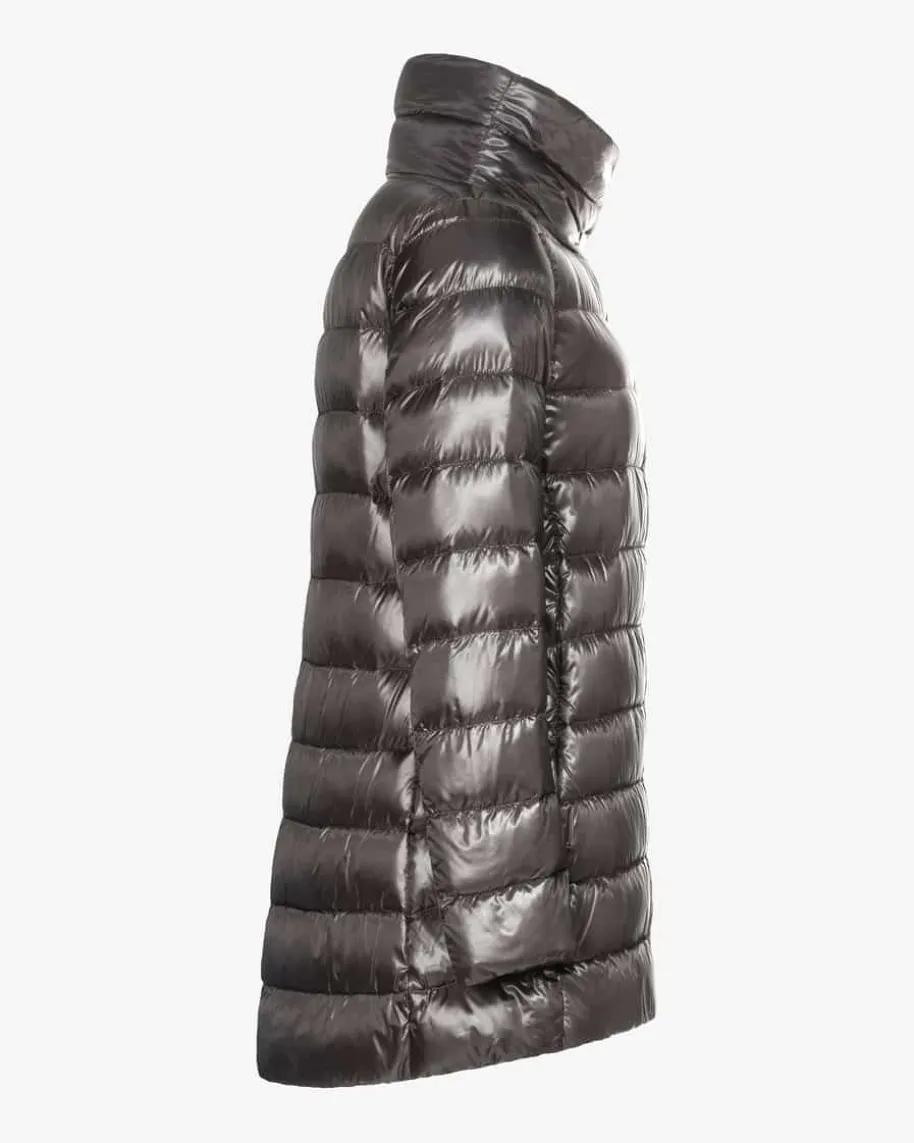Amelia Daunenmantel für Damen von Herno in Anthrazit. Das italienische Label hatsich mit seinen besonders weichen und leichten Daunen-Modellen einen Namen inder Modebranche gemacht und ist für Liebhaber nicht mehr wegzudenken. DieserKlassiker präsentiert sich in gewohnt changierender Stepp-Optik und hält ankalten Tagen nicht nur warm, sondern punktet auch durch die modische A-LinienPassform.