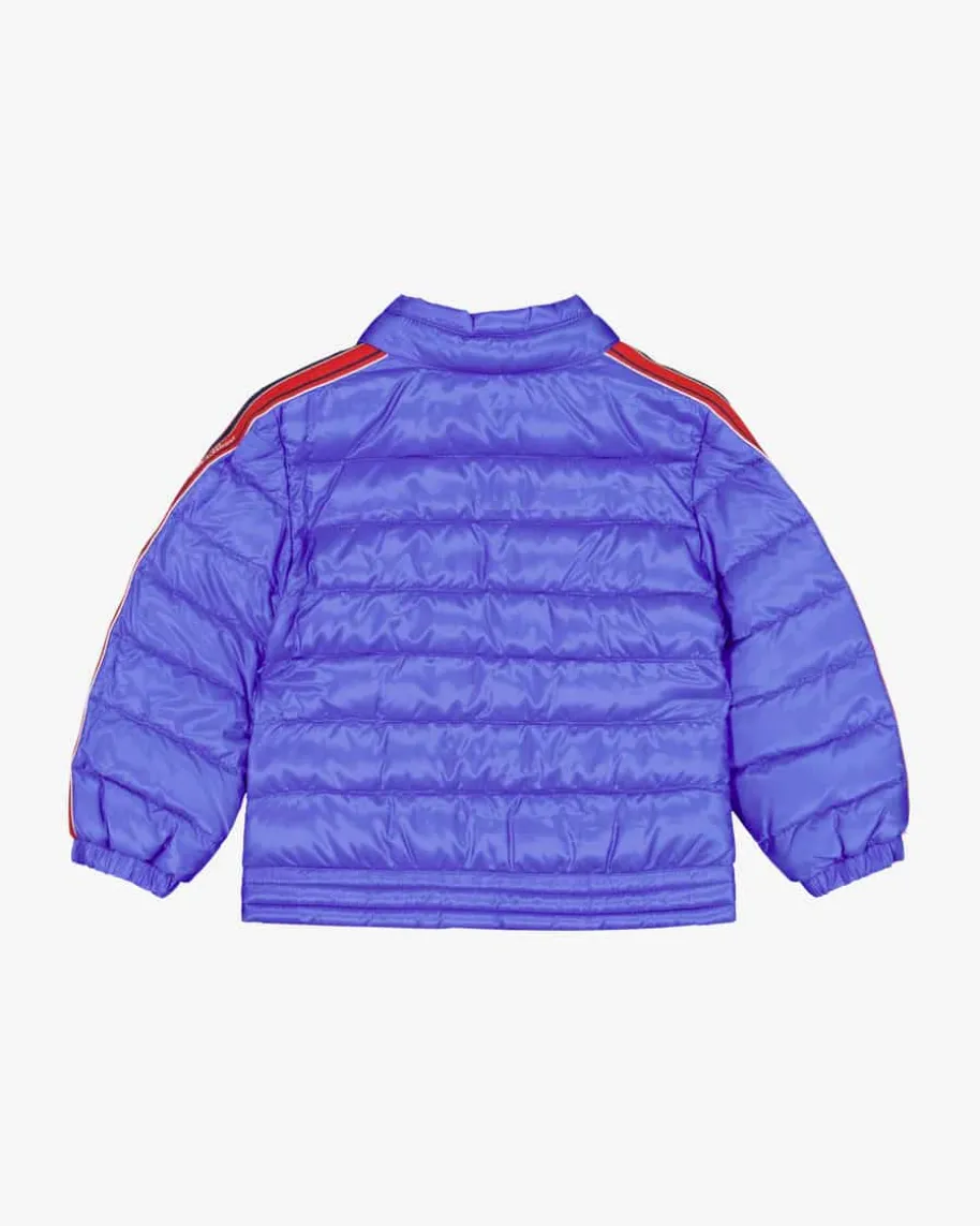 Anderim Baby-Daunenjacke von Moncler Enfant in Blau. Das zeitlose Modellpräsentiert sich in klassischer Stepp-Optik und hält Ihre Kleinen dankhochwertiger Daunen-Federn-Füllung an kalten Tagen optimal warm. Zugleichverleihen Kontrast-Streifen an den Ärmeln sowie die labeltypische Logo-Applikation das gewisse Etwas.