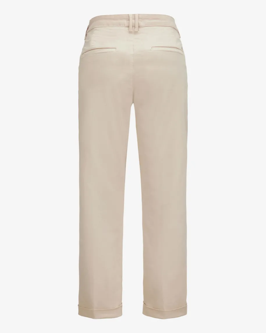 Angelica Chino für Damen von Latino in Sand. Das Modell überzeugt dank demdezent zulaufenden Bein mit Umschlag sowie dem soften Material-Mix mit hohemTragekomfort, während die klassische Aufmachung einen zeitlosen Office-Begleiterschafft.