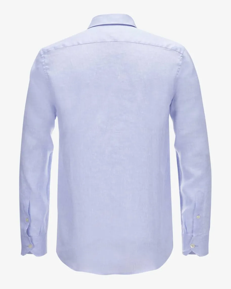 Antonio Leinenhemd für Herren von Frescobol Carioca in Hellblau. Das leichttaillierte Modell überzeugt dank der kühlenden Leinen-Qualität in melierterOptik, während klassische Details das legere Gesamtbild gekonnt ergänzen.