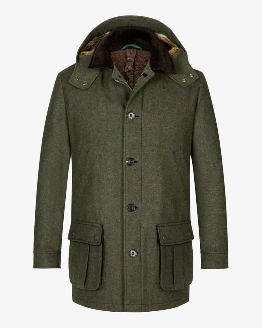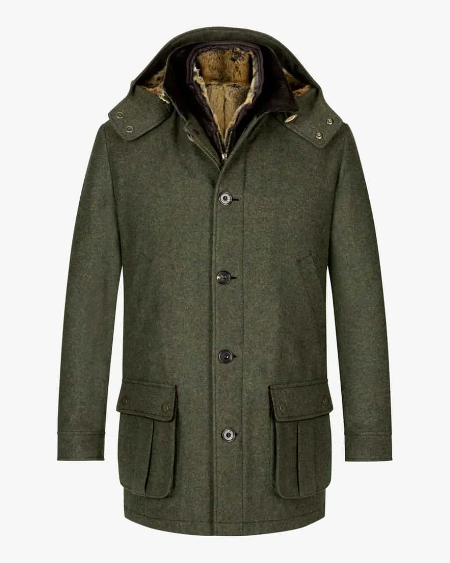 Antonius 2-in-1 Jacke für Herren von Habsburg in Khaki. Der gerade geschnitteneMantel präsentiert sich mit Ellbogen-Patches und melierter Optik, währendklassische Details einen modischen sowie traditionellen Begleiter für Büro undFreizeit schaffen. Highlight ist die herausnehmbare Weste in Stepp-Optik mithochwertigem Hamsterbesatz im Innenfutter.