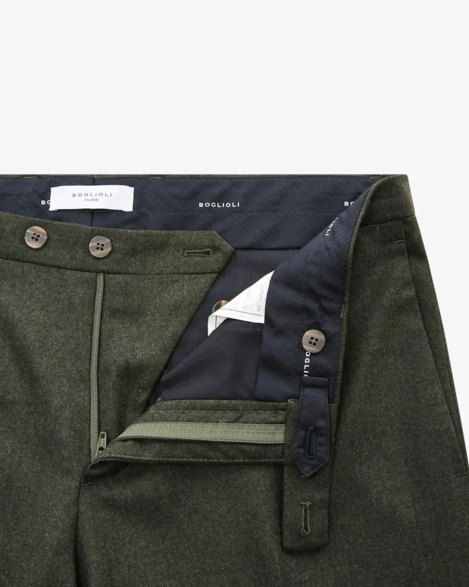 Anzughose für Herren von Boglioli in Oliv. Die eleganten Designs von Bogliolisprechen für sich, denn die Kreationen verkörpern ein hohes Niveau anStilempfinden und Klasse. Auch dieses schmale Modell zeichnet sich durch daszeitlose Design mit klassisch-edlen Details aus, während die feine Schurwoll-Qualität angenehme Tragemomente verspricht. Ein stilsicherer Begleiter fürgehobene Office-Looks oder festive Momente.