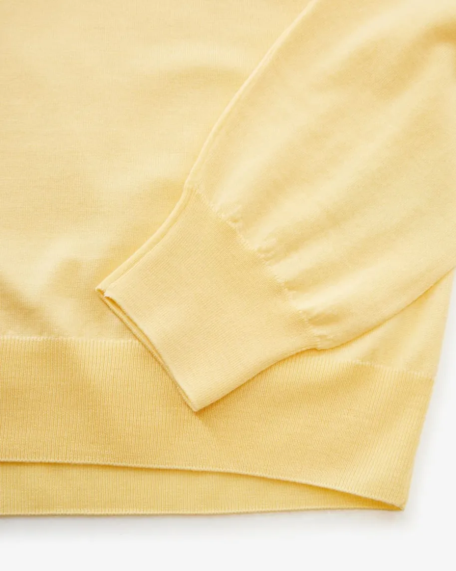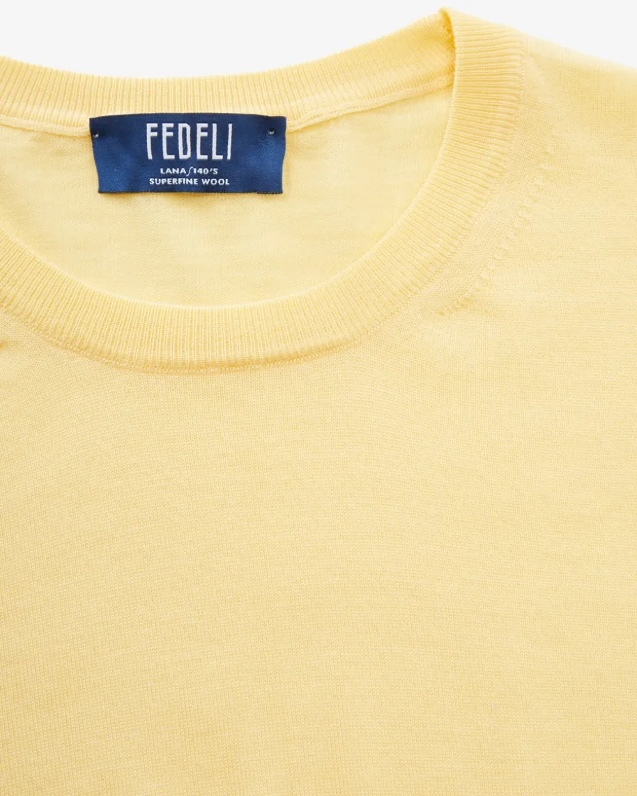 Argentina M.L. Pullover für Herren von Fedeli in Sonnengelb. Die sehrhochwertige Super 140 Schurwoll-Qualität verleiht ein besonders angenehmesTragegefühl, während das cleane Design einen vielseitigen Casual-Begleiter fürklassische Outfits schafft. Zudem wird dank einer besonderen Webtechnik eineperfekte Passform gewährleistet.